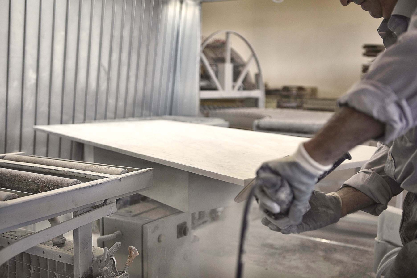 International Marmi verwendet für all seine Arbeiten technologisch fortschrittliche Maschinen, die in der Lage sind, ein genaues Ergebnis zu erzielen, das den Kundenanforderungen entspricht. Dank der wertvollen verfügbaren Ressourcen kann das Unternehmen jeden Bedarf befriedigen.