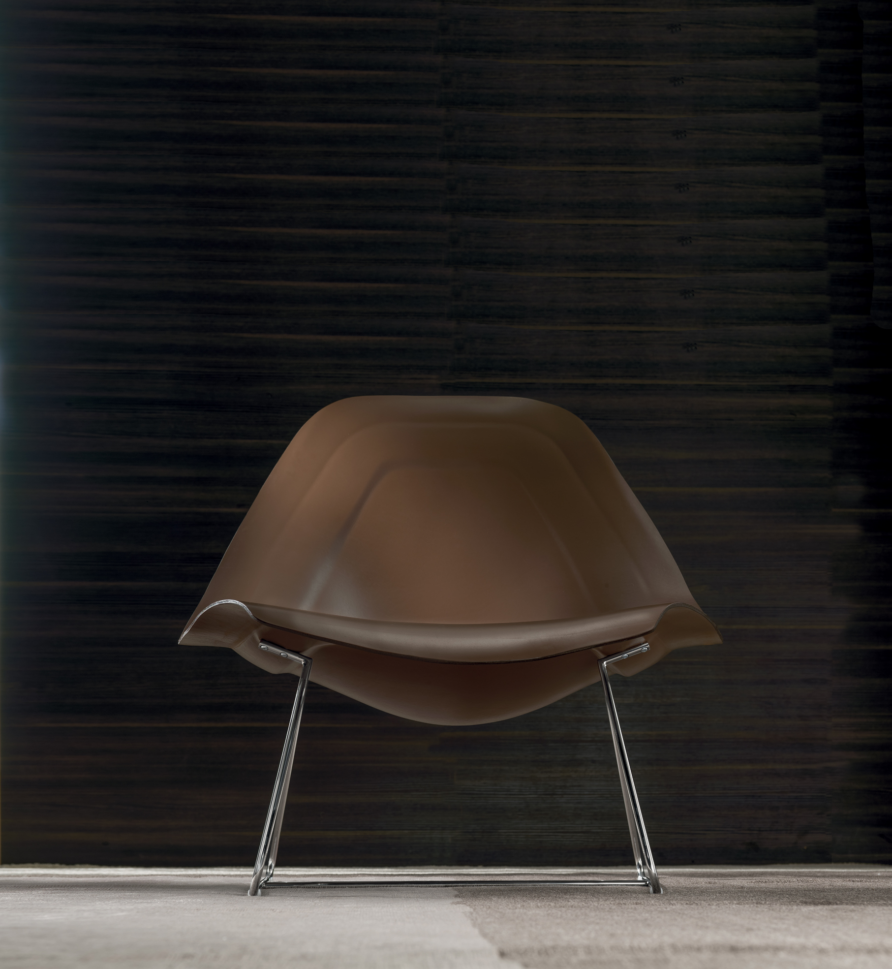 Der Sessel besteht aus zwei Lederblättern, die lange Zeit in speziellen Formen gepresst wurden. Diese Blätter werden aneinander geklebt, nachdem ein Aluminiumgestell, welches im Sandgussverfahren produziert wurde, dazwischen befestigt wurde. Die Stützen des Sessels sind ein Stabgestell aus verchromten Stahl.