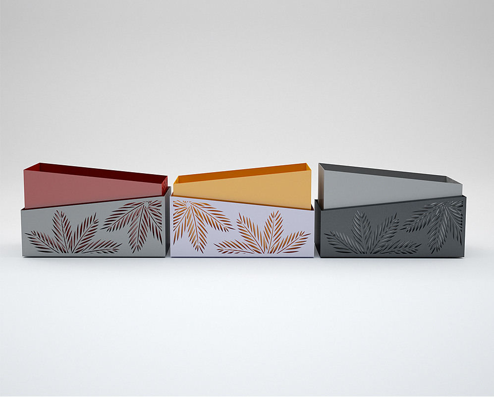 FINISH: – supporting structure to the ground in white aluminium RAL 9006, anthracite grey RAL 7016,pure wihite RAL 9010 – structure carrying the pot, available in pure white RAL 9010, signal yellow RAL 1003, flame red RAL 3000, telemagenta RAL 4010, sky blue RAL 5010 yellow green RAL 6018, telegrey RAL 7046, anthracite grey RAL 7016.