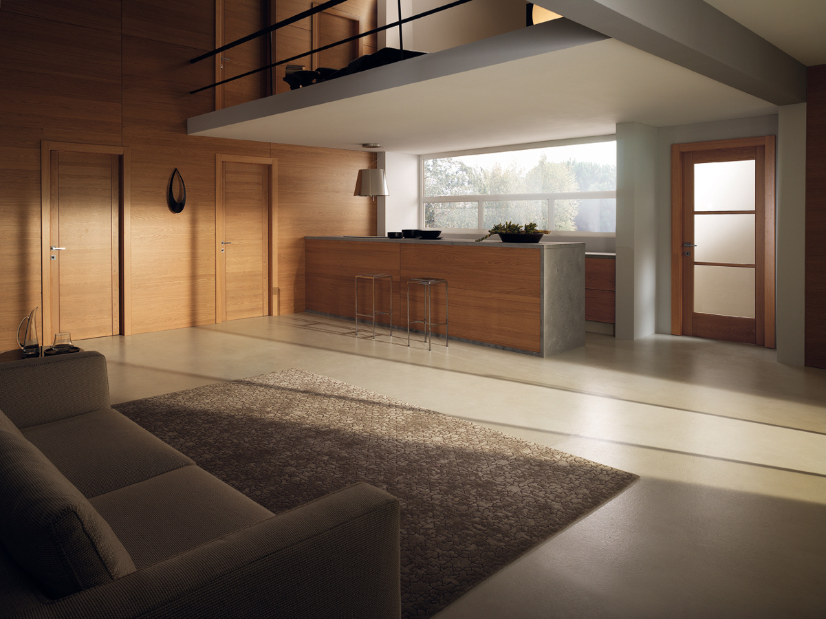 Das Modell Pangea ist das Original aller Massivholztüren: Anuba-Scharniere; Spanplatten-Tür.