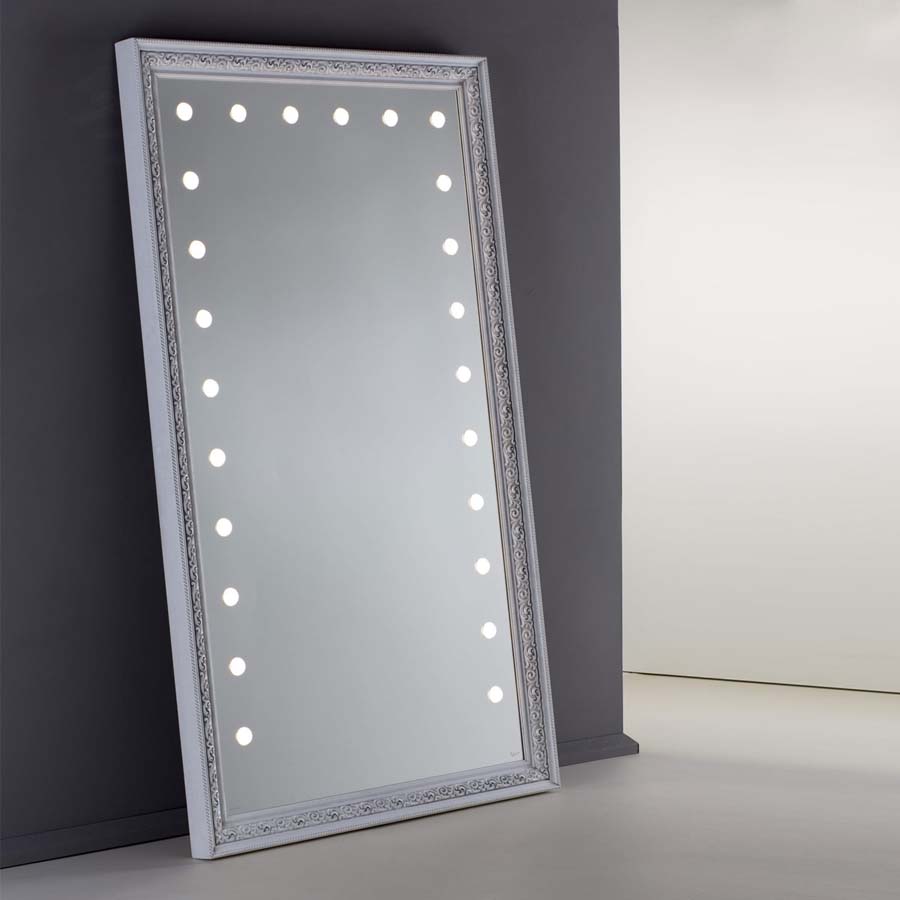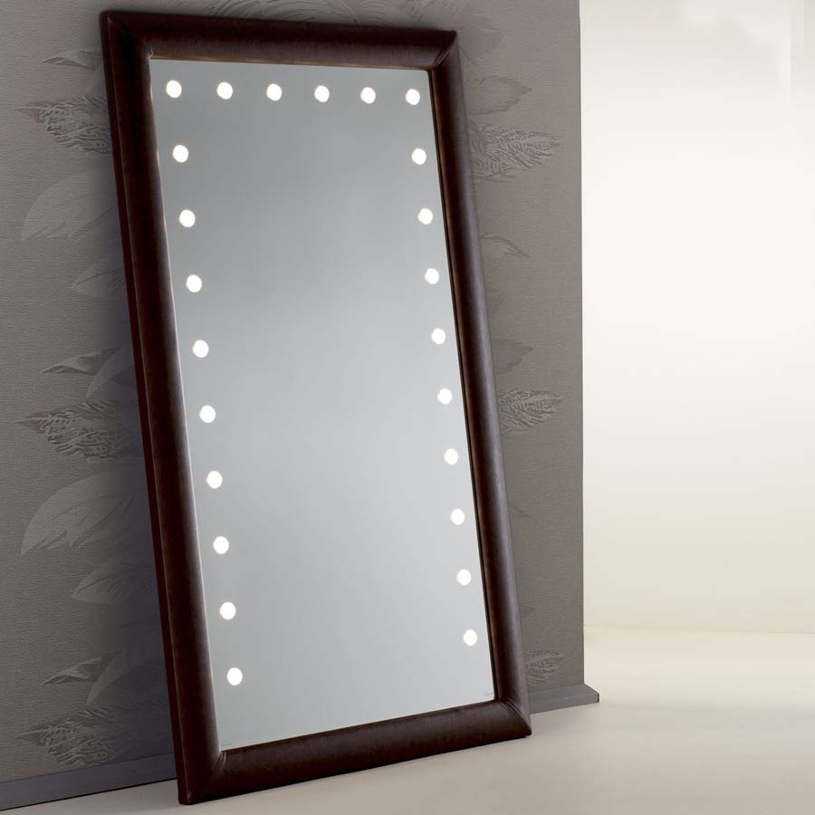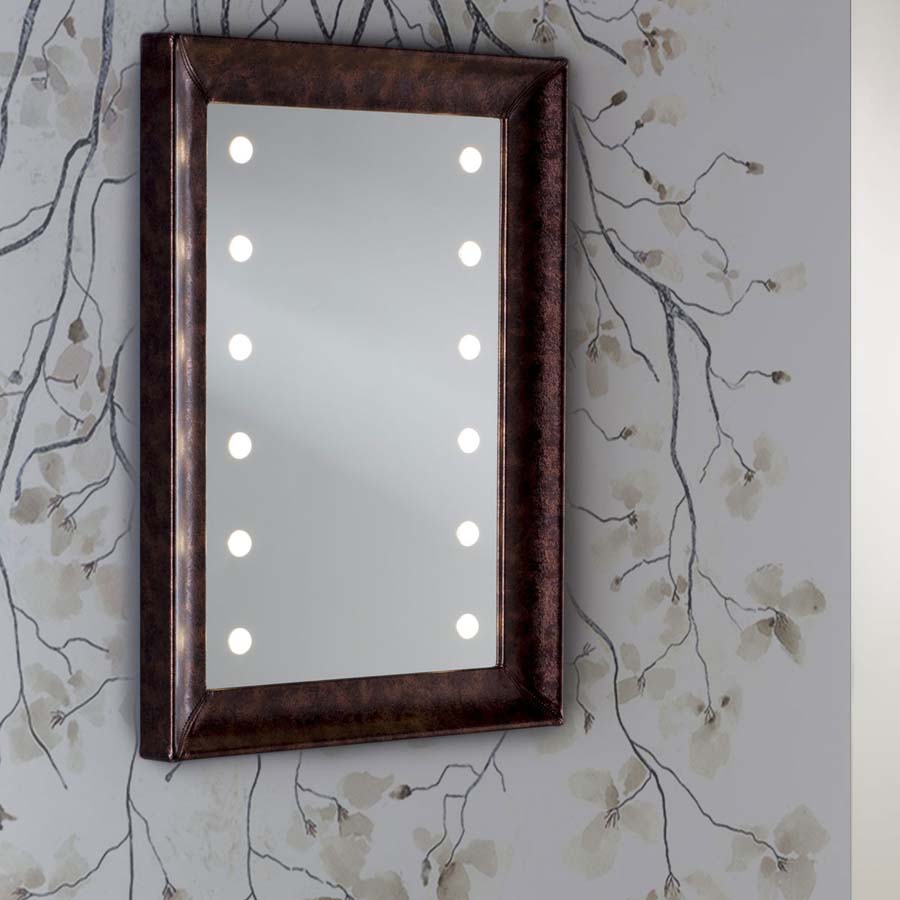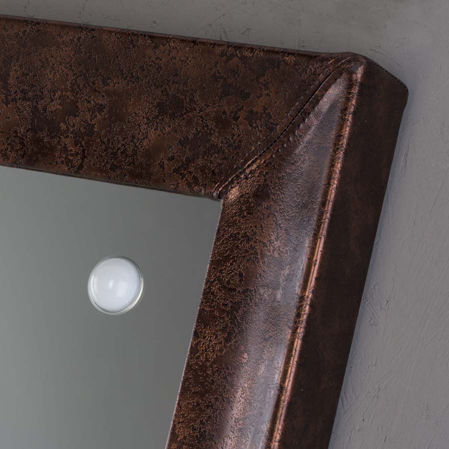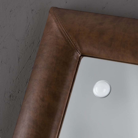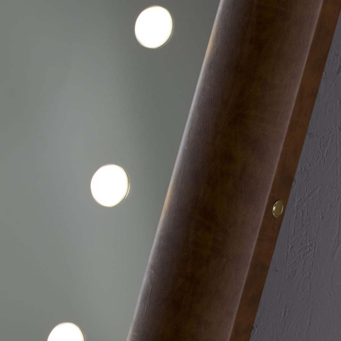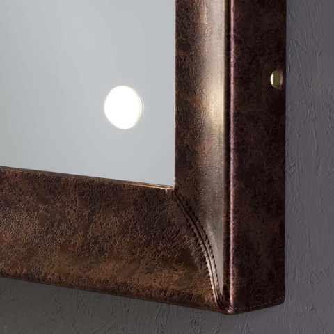 Es besteht eine perfekte Synergie zwischen dem industriellen Entwurfsansatz, der handwerklichen Sorgfalt und der kreativen Inspiration Die Linie mit beleuchteten Spiegeln mit Rahmen MF repräsentiert das moderne Konzept von Luxus und spielt mit der kühlen Transparenz des Glases und der Wärme der antiken und lebendigen Materialien wie Holz und Leder.