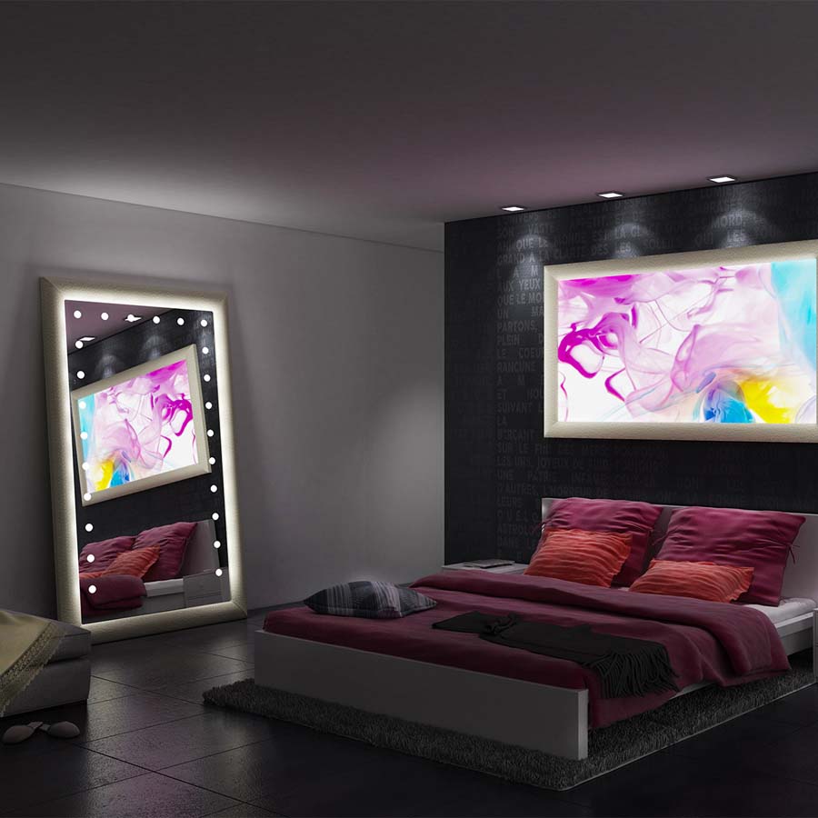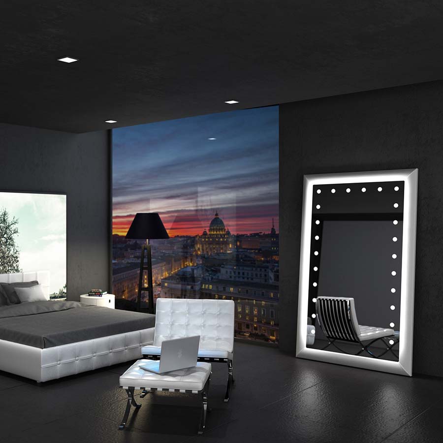 I-light ist die von Cantoni patentierte Beleuchtungstechnologie, die komplett in die Dicke des Spiegels integriert ist und mit absoluter Perfektion die Farbleistung und den Einfall des Sonnenlichts nachbildet.