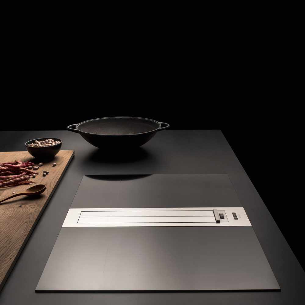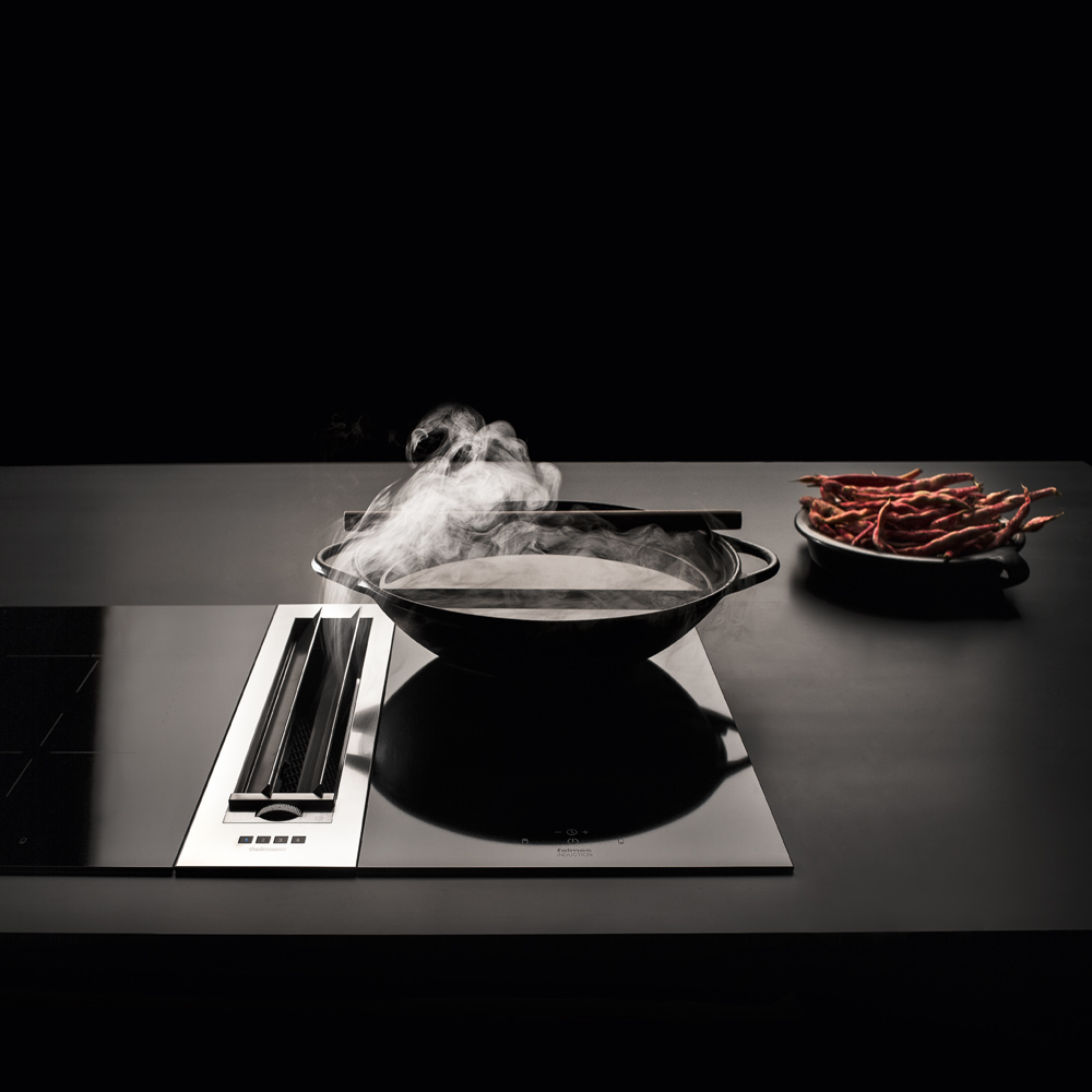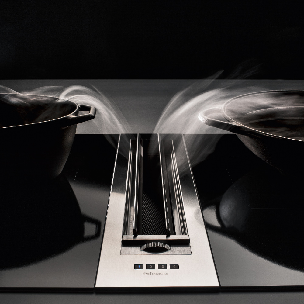 Kombinierte Systeme. Falmec hat eine Reihe von Produkten entwickelt, welche Kochen und Absaugen kombinieren und dabei auf ein minimalistisches Design, Ergonomie und effiziente Leistung setzen. Diese kombinierten Lösungen, angeboten für unterschiedliche Arten der Installation, enthalten unsere ganze Erfahrung in der Luftreinigung, welche den aktuellen Trends der Innenarchitektur und unserem modernen Lebensstil entsprechen. Ausgestattet mit leistungsstarken und effizienten Motoren, die gleichzeitig unglaublich leise sind, garantieren diese Produkte eine ausgezeichnete Leistung im Abluft- und Umluftbetrieb. Die Nutzung der exklusiven Falmec Technologie Carbon.Zeo im Umluftbetrieb sorgt für wirksame Beseitigung von Gerüchen und dank Zeolith gleichzeitig für eine erhebliche Reduzierung von Küchendunst.