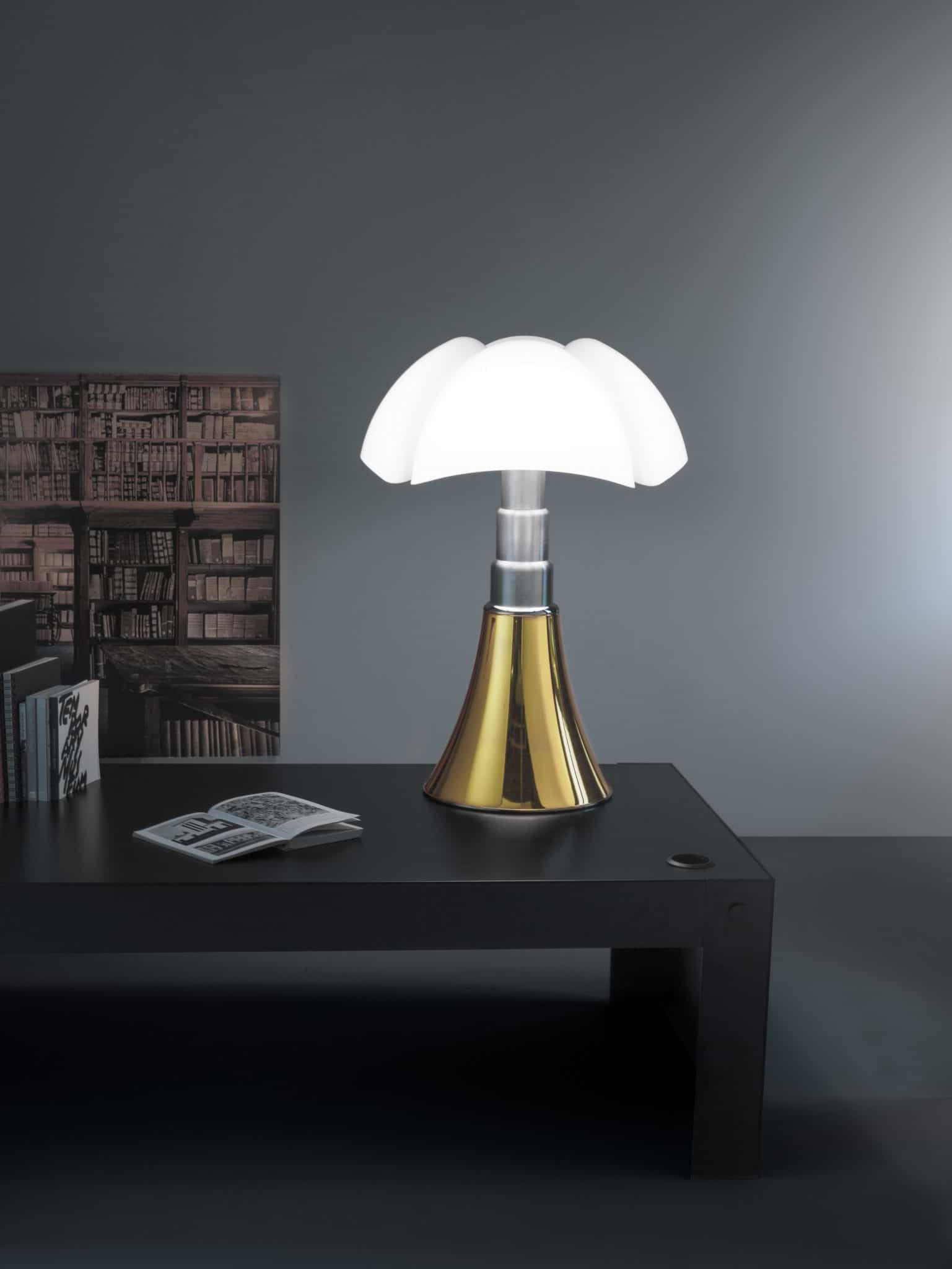 Der Schwung, der zu einer Ikone geworden ist Dieser im Laufe der Zeit kristallisierte Impuls enthält den gesamten Wert, die emotionale und stilistische Ladung dieser Designikone. Eine Lampe, die durch ihren Diffusor und den Teleskopfuß mit einem gewundenen und krummlinigen Trend Diskontinuität, Modernität, Humor und Anmut, Eleganz und Dynamik einschließt. Gerade dank des Mutes, all diese Facetten vorgeschlagen zu haben, widersetzt sich Pipistrello der Zeit mit einem einzigartigen Charme.