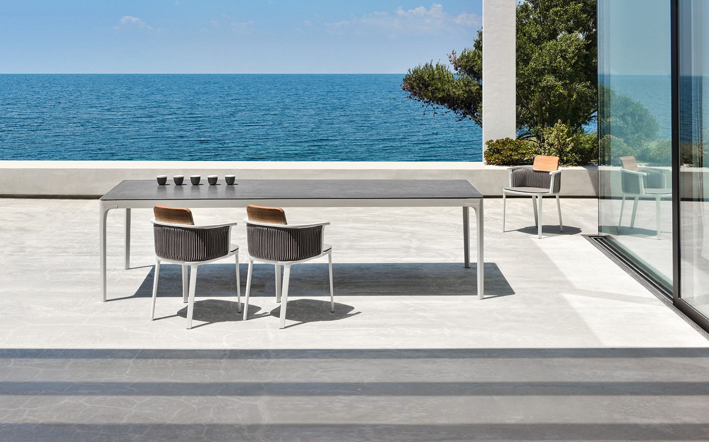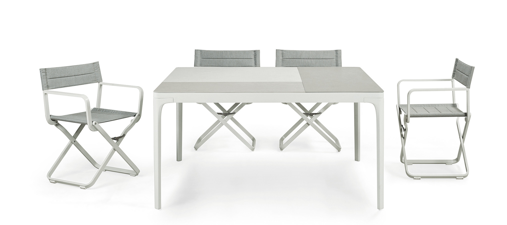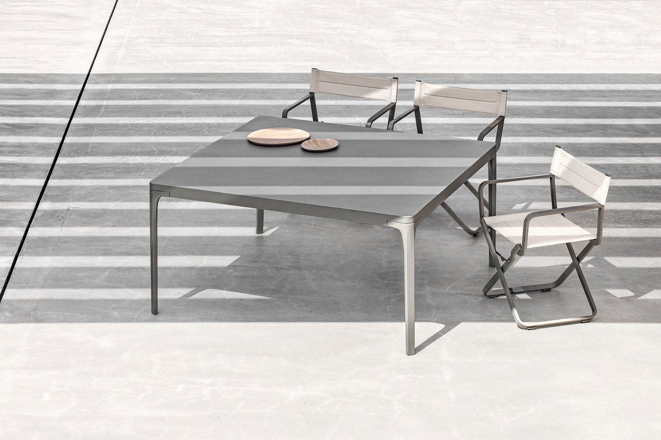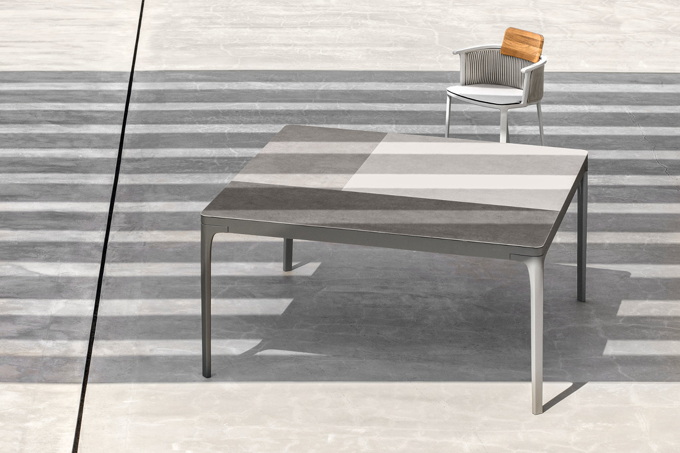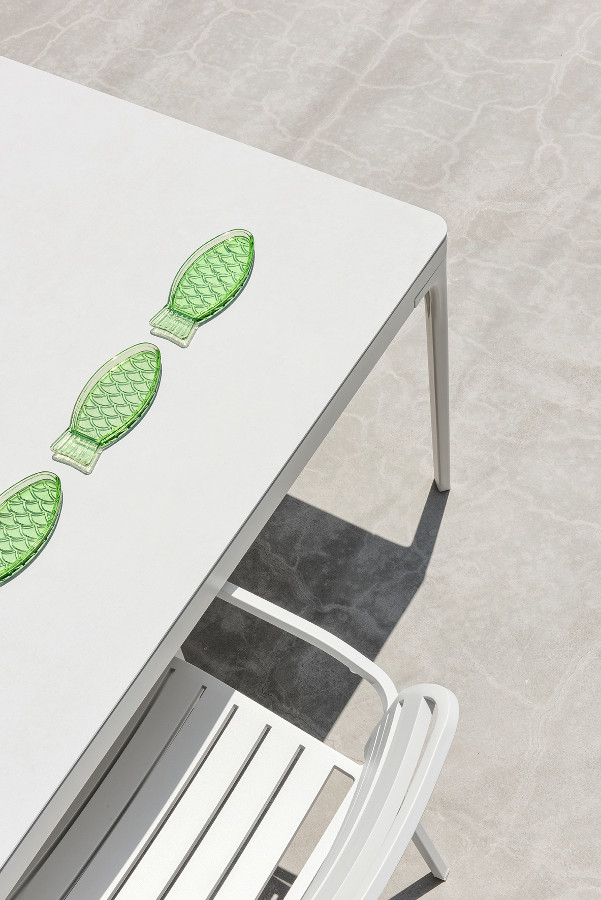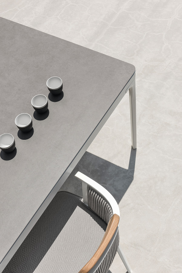 Play ist eine Familie von quadratischen oder rechteckigen Tischen mit essentiellem Design, zeitgenössischem Charakter und harmonischen Geometrien. Die Spieltische bieten die Möglichkeit, mit den Abmessungen und der Vielfalt der Materialien zu spielen, aus denen das Oberteil besteht: lackiertes Aluminium, natürliches Teakholz, Steinzeug mit Steineffekt oder mit einem besonderen Materialfinish. Sie sind so konzipiert, dass sie sich vielseitig mit anderen Produkten der Ethimo-Kollektion kombinieren lassen und somit für jeden Bedarf im Wohn- und Objektbereich geeignet sind.