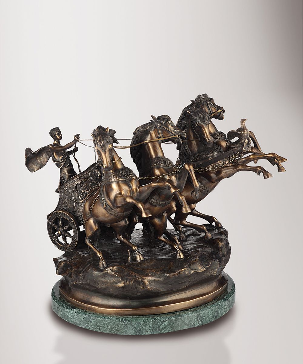 QUADRIGA eine klassische römische bronzestatue mit ein reiter und vier pferde aus zweifarbige Bronzepatina Kunsthandwerke