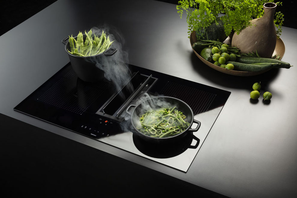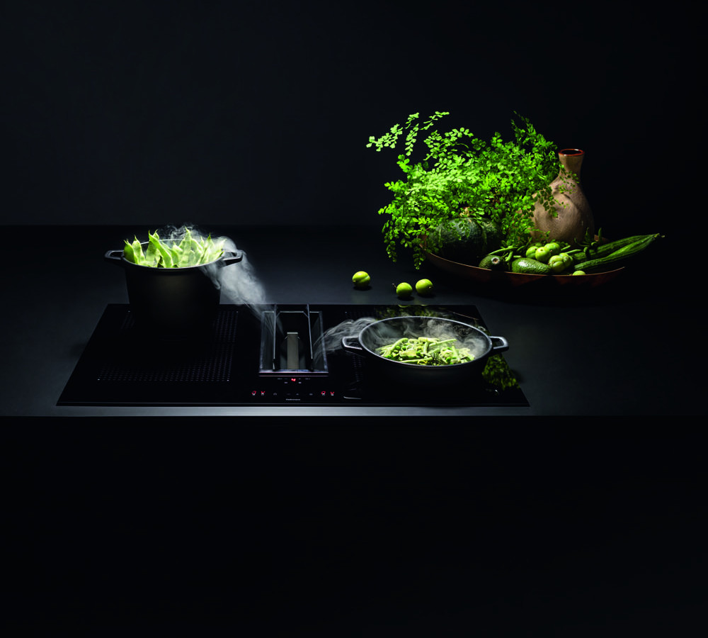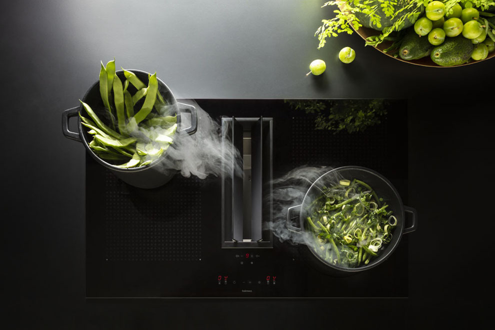 Kombinierte Systeme. Falmec hat eine Reihe von Produkten entwickelt, welche Kochen und Absaugen kombinieren und dabei auf ein minimalistisches Design, Ergonomie und effiziente Leistung setzen. Diese kombinierten Lösungen, angeboten für unterschiedliche Arten der Installation, enthalten unsere ganze Erfahrung in der Luftreinigung, welche den aktuellen Trends der Innenarchitektur und unserem modernen Lebensstil entsprechen. Ausgestattet mit leistungsstarken und effizienten Motoren, die gleichzeitig unglaublich leise sind, garantieren diese Produkte eine ausgezeichnete Leistung im Abluft- und Umluftbetrieb. Die Nutzung der exklusiven Falmec Technologie Carbon.Zeo im Umluftbetrieb sorgt für wirksame Beseitigung von Gerüchen und dank Zeolith gleichzeitig für eine erhebliche Reduzierung von Küchendunst.