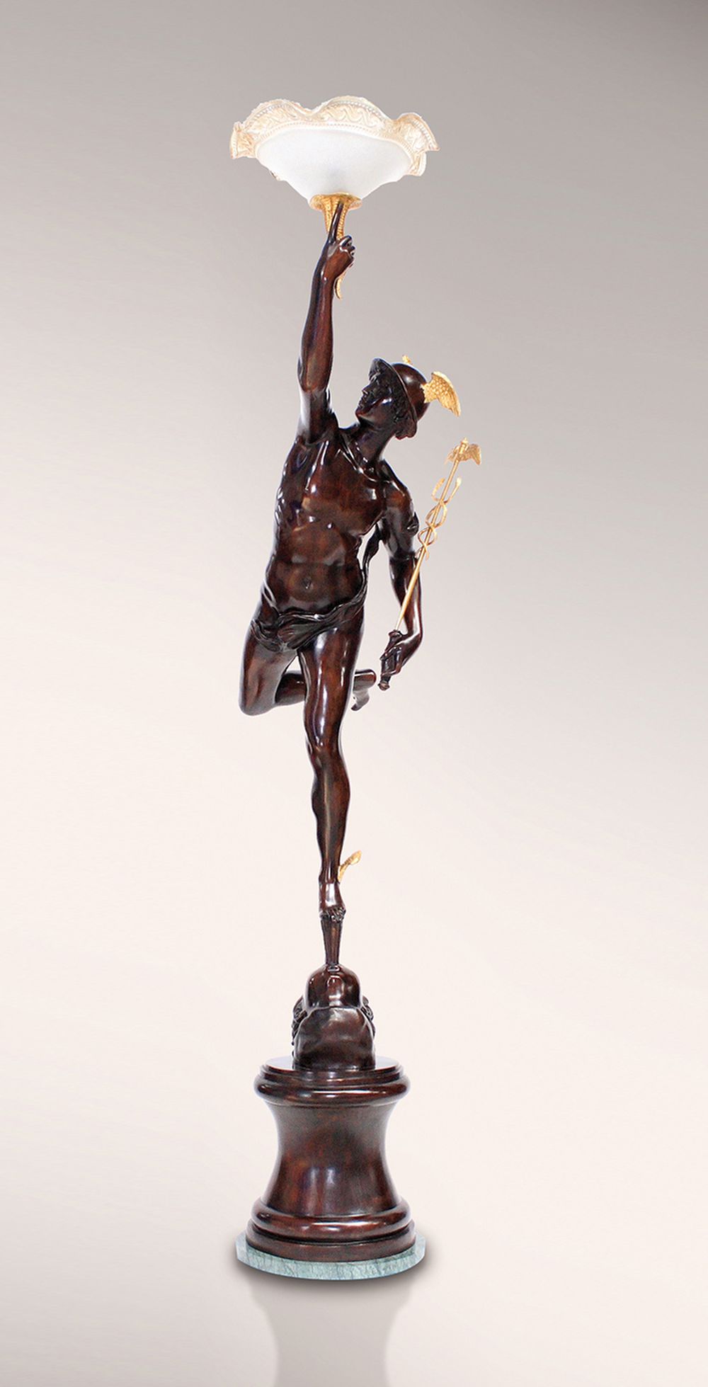 QUECKSILBERLAMPE klassische stehlampe Skulptur Größe Art Deco Statue aus Patina 500