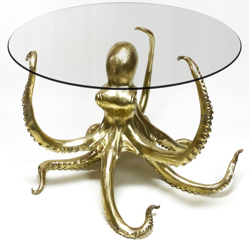 RUNDTISCH POLIPO ein klassisches tisch mit tintenfisch aus goldener bronze mit Glasscheibe Kunsthandwerke