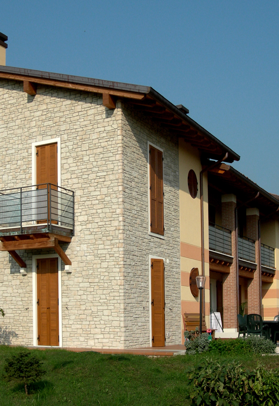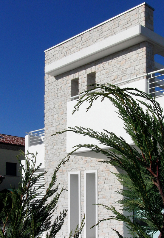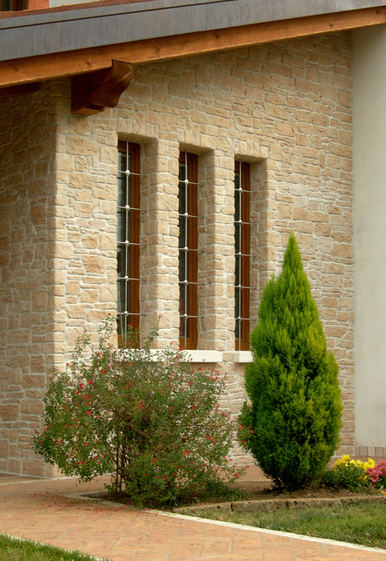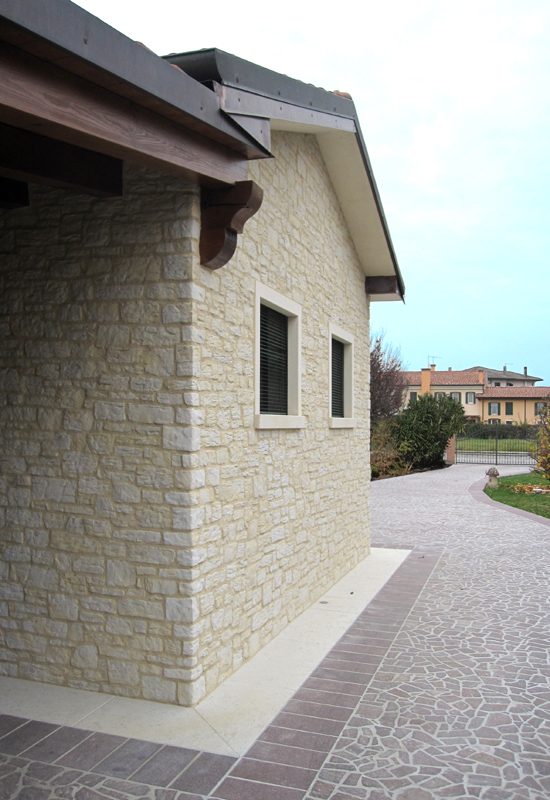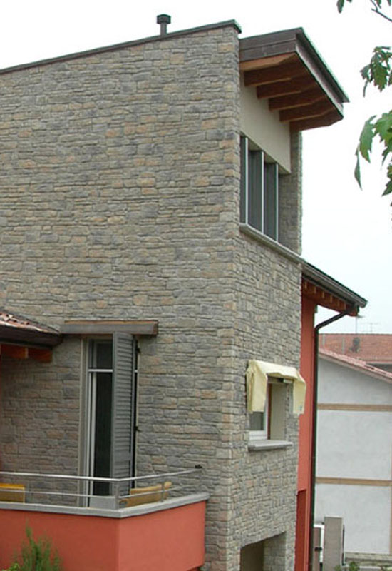 Die Dicke der ITALPIETRA-Verkleidungen (von 2 bis 6 cm, je nach Modell) und das Gewicht (zwischen 22 und 36 kg/m²) ermöglicht die Montage auf ganz unterschiedlichen Untergründen, ohne dass sich daraus Schwierigkeiten mit den zu verkleidenden Bauelementen ergeben.