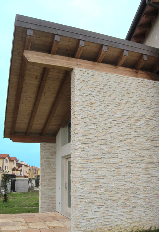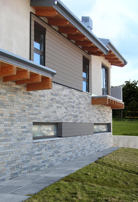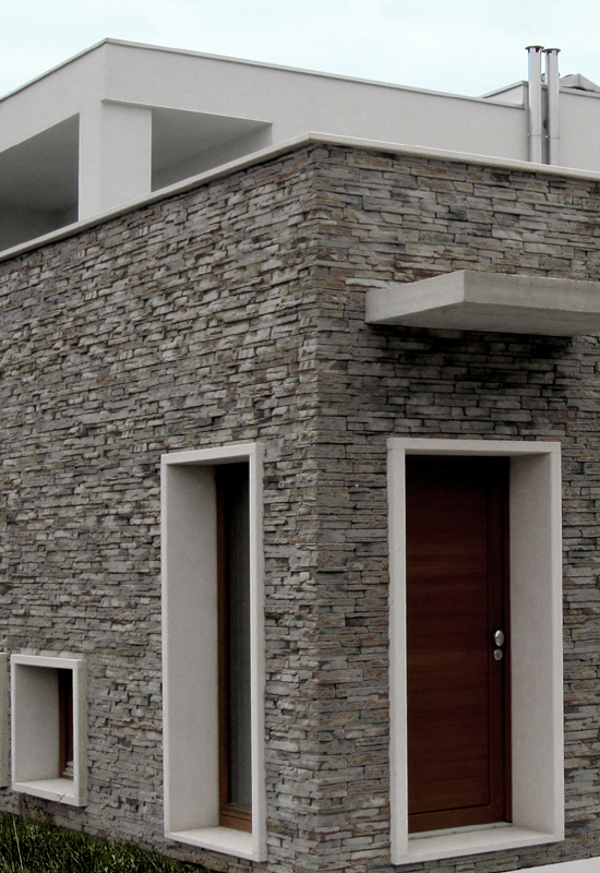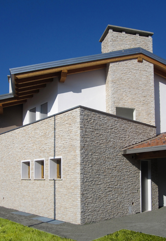 Die Dicke der ITALPIETRA-Verkleidungen (von 2 bis 6 cm, je nach Modell) und das Gewicht (zwischen 22 und 36 kg/m²) ermöglicht die Montage auf ganz unterschiedlichen Untergründen, ohne dass sich daraus Schwierigkeiten mit den zu verkleidenden Bauelementen ergeben.
