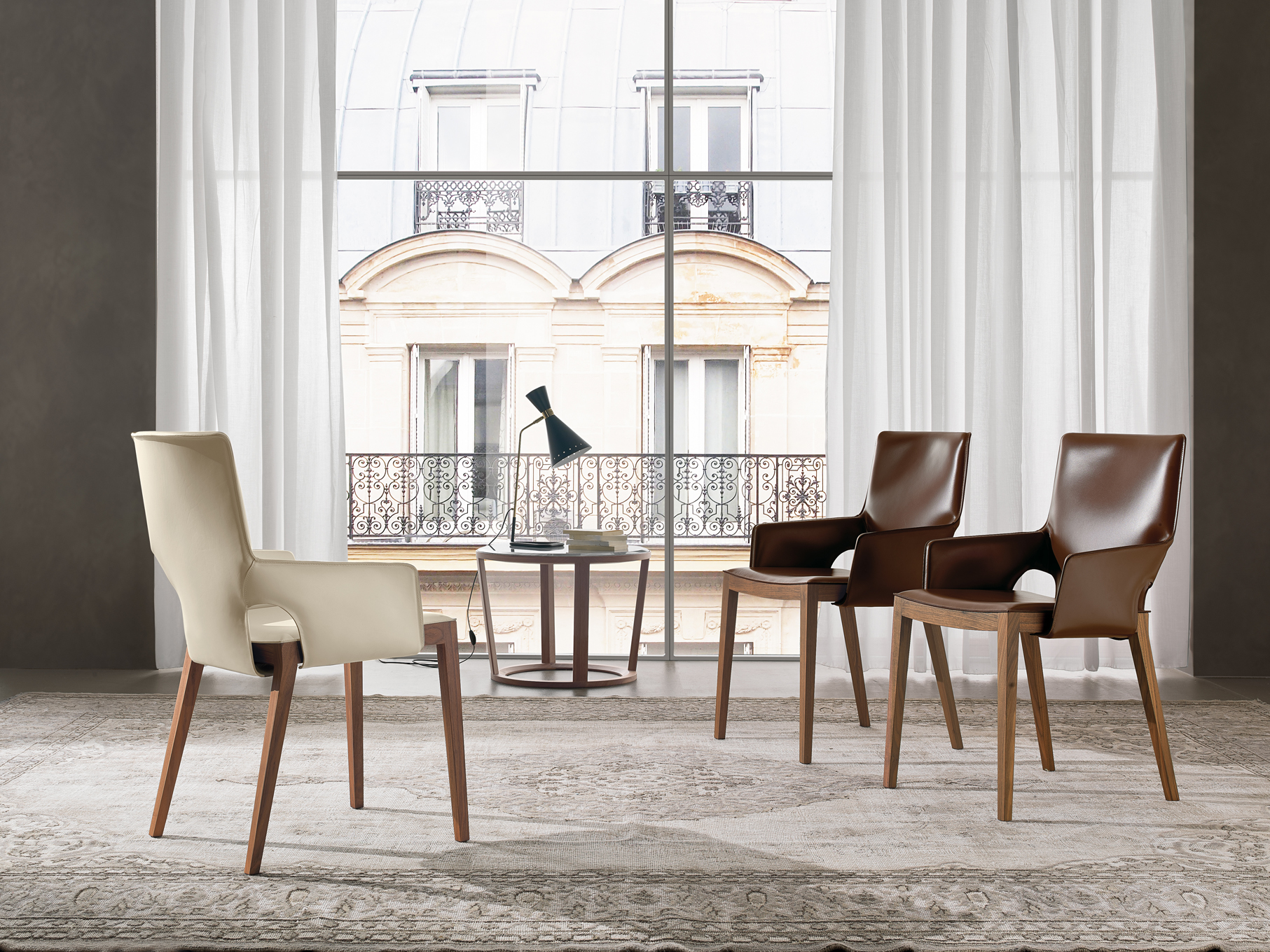 Das Modell ist nur in Rindleder verfuegbar. Das Gestell ist aus massivem Nussbaumholz mit matter Ausfuehrung „ Wachseffekt „ verfuegbar, oder in einer der wirklichen Farben der Kollektion lackiert, 4 Beine in quadratischen Stahlrohr verchromt poliert oder schwarz effekt, 5 Sterne Drehkreuz auf Rollen aus poliertem Aluminium hoehenverstellbar durch Gasfederpneumatik und durch Wippmechanik ausgestattet.