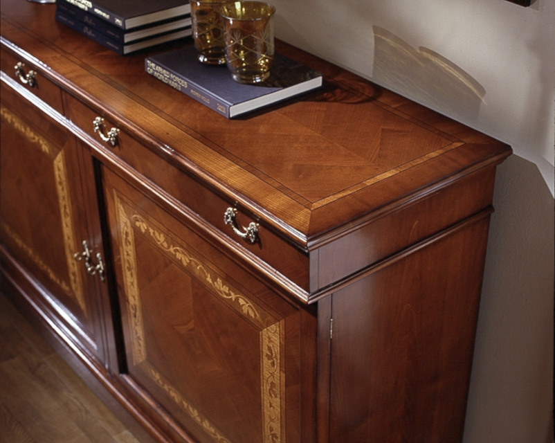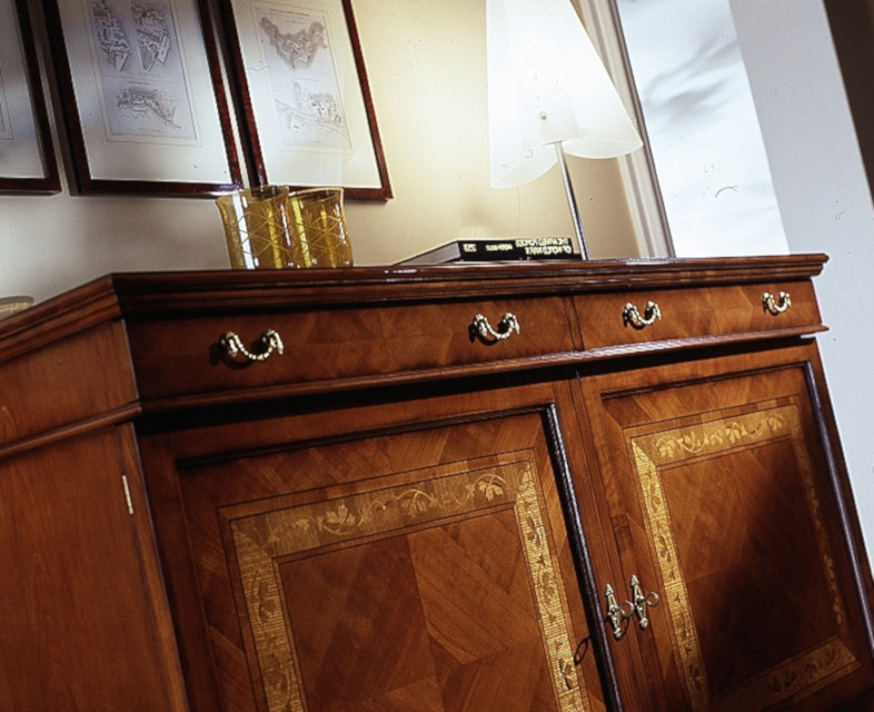 Wahl des Holzes: Es werden unterschiedliche Essenzen verwendet, die jeweils die Einrichtungselemente aufwerten, die durch bestimmte Inlays und Schnitzereien bereichert werden. Die Verwendung von Massivholz erster Qualität gewährleistet über die Jahre eine spürbare Qualität und Haltbarkeit.
