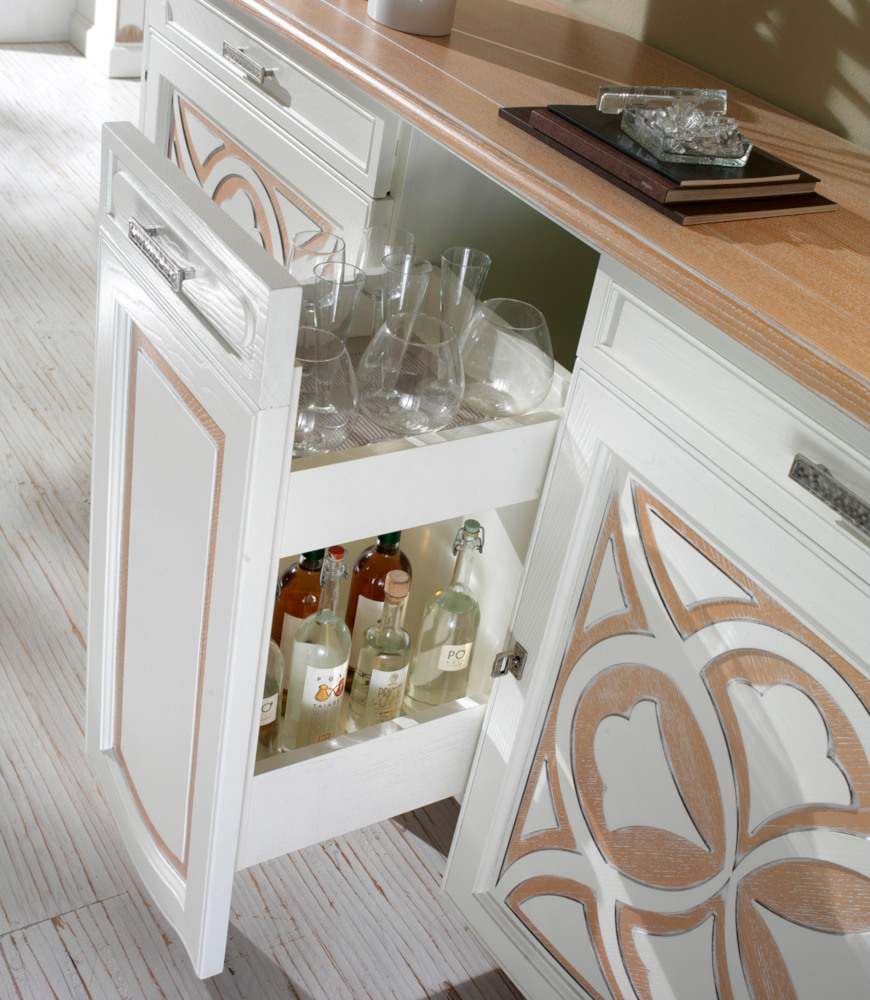 Zubehör: Die Griffe aus Messingguss, die detailliert bearbeitet und bearbeitet wurden, werden mit der Sorgfalt derjenigen ausgewählt, die versuchen, den Kreis der Perfektion zu vollenden, selbst mit den Accessoires, die das Holz und die Formen am besten unterstreichen. Jeder Wunsch nach bestimmten oder gesuchten Griffen kann dank der Flexibilität eines Handwerksbetriebs erfüllt werden, bei dem es immer darum geht, dem Kunden ein einzigartiges Erlebnis zu bieten.