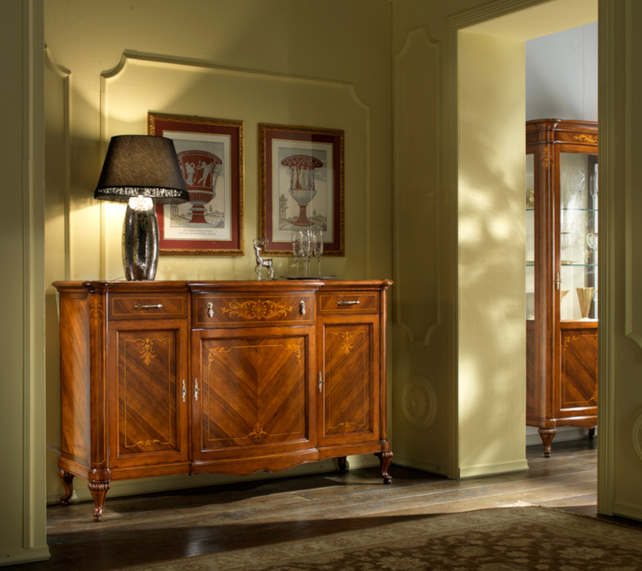 Wahl des Holzes: Es werden unterschiedliche Essenzen verwendet, die jeweils die Einrichtungselemente aufwerten, die durch bestimmte Inlays und Schnitzereien bereichert werden. Die Verwendung von Massivholz erster Qualität gewährleistet über die Jahre eine spürbare Qualität und Haltbarkeit.