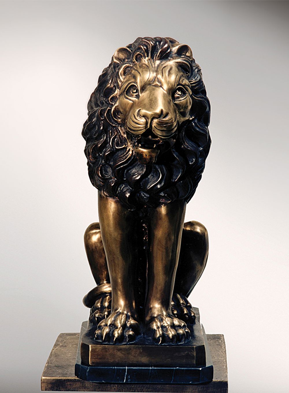 Sitzender Loewe eine Klassische Statue Tierfigur aus zweifarbige Bronzepatina Kunsthandwerk