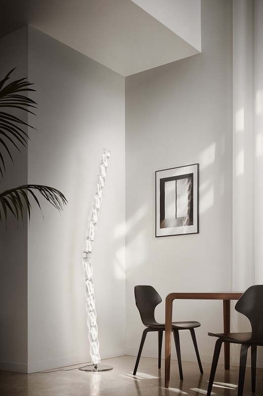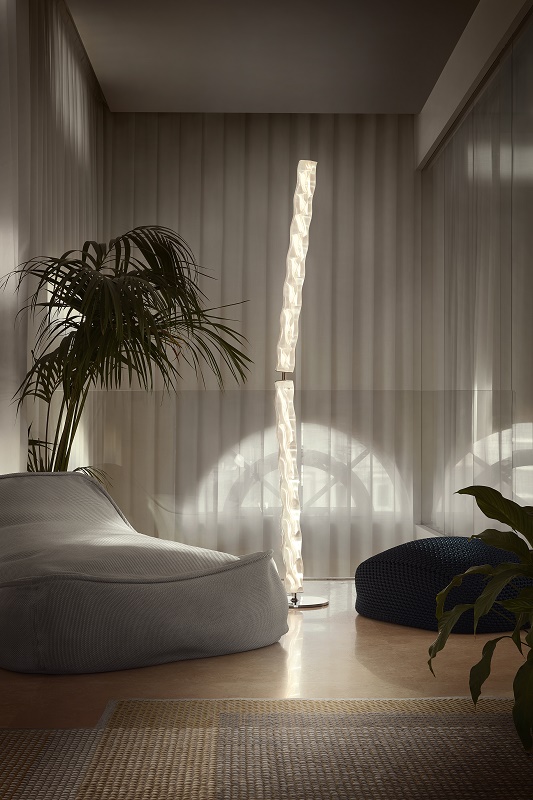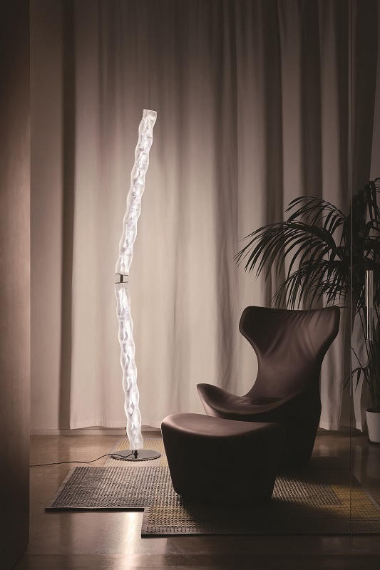 TECHNISCHE DETAILS FORMAT: 32 cm x h. 207 cm / 12-3/4” x h. 81-1/2 FARBEN: Prisma MATERIALIEN: Lentiflex® – Stainless Steel Base MIT: Dimmer LEUCHTMITTEL: 40W -100~240Vac/24Vdc 7.000 lumen – 3000 Kelvin Dimmable Hugo-Floor_Technical-Sheet