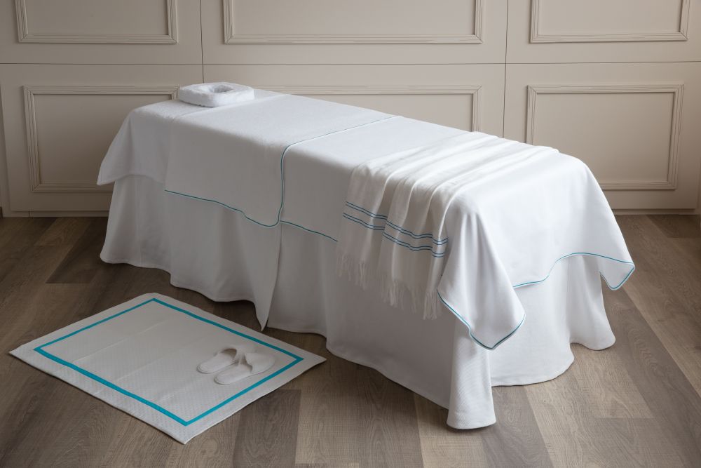Unser Konzept für die Spa-Welt legt ein besonderes Augenmerk auf die Personalisierung. Unsere umfassende Zusammenarbeit mit unseren Kunden und deren Designern ist in der Tat ein Schlüsselfaktor, um Produkte mit einem hohen ästhetischen Gehalt zu schaffen, die Philosophie und das Image der Marke respektieren, während wir gleichzeitig der Funktionalität und dem Verwendungszweck große Aufmerksamkeit schenken. Alle unsere Angebote sind daher vollständig personalisiert, auch auf der Grundlage der Dienstleistungen und Behandlungen, die vom jeweiligen Spa angeboten werden, wie zum Beispiel Maniküre- und Massagekissen in Sondergrößen und Formen, Pareos, Handschuhe und Paraffinschuhe. Neben der Herstellung von Tüchern in jeder Größe und Bademänteln in verschiedenen Passformen und Modellen, statten wir auch Massageliegen komplett aus und passen jedes Element an verschiedene Größen und Formen an.