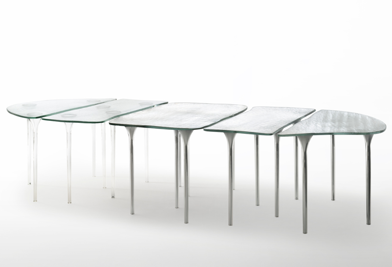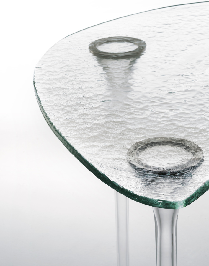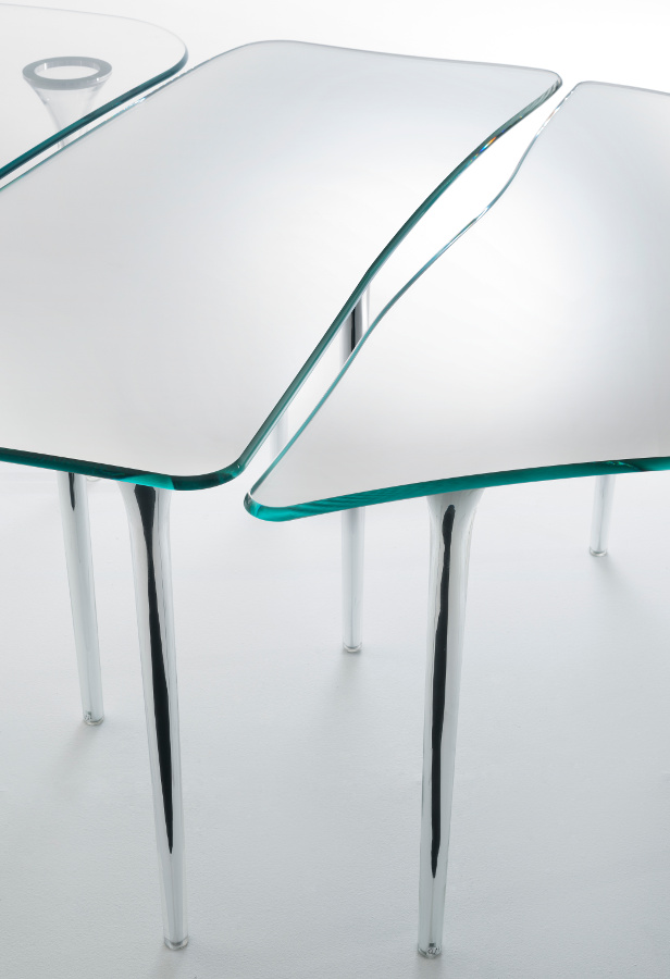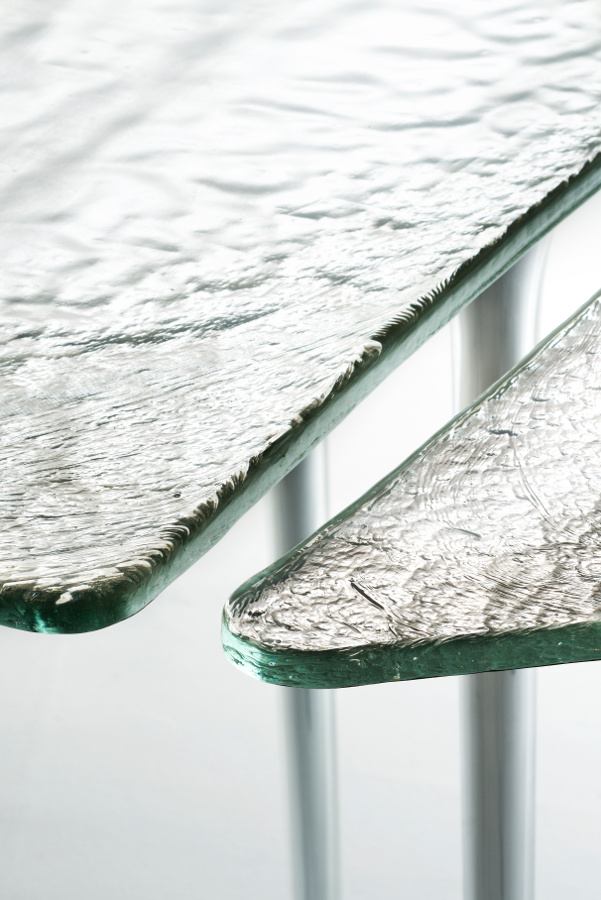 *Achtung, die Tischplatten aus gegossenem Glas zeigen sichtlichen Unregelmäßigkeiten, und strukturellen und Farbungleichheiten, die tatsächlichen Eigenschaften des Materials sind und kein Reklamationsgrund sein können.