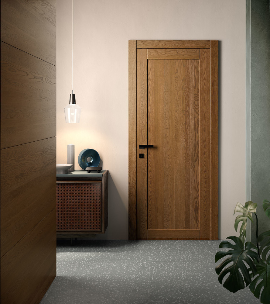 Die Holztüren der Kollektion Spenia sind in allen Eiche-Finishlösungen von Garofoli verfügbar und lassen sich somit perfekt mit unserem Parkett und unserer Vertäfelung kombinieren. Jedes Modell verfügt über verdeckte Scharniere, Magnetschloss und einen neuen Rahmen, der eine einzigartige und innovative Lösung darstellt, weil er die Wahl zwischen aufgesetzten Blenden auf beiden Seiten der Tür oder einer aufgesetzten Blende und einer Teleskopblende auf der anderen Seite lässt.