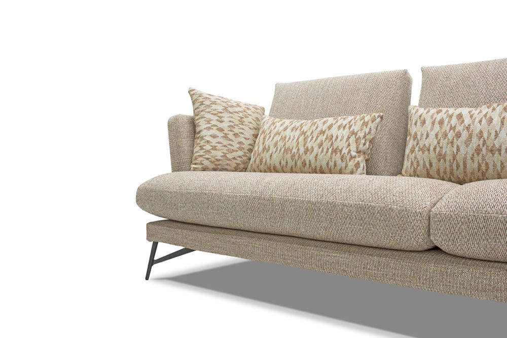 Ein Sofa, das raffinierten Stil, gänzlich italienisches Design und Zweckmäßigkeit der Anwendung vereint, eine Wohnlandschaft zum Leben und Erleben mit allen Sinnen. Mit der schlichten Form und der sanften Behaglichkeit des Sofas, dass mit einem abnehmbaren Bezug ausgestattet ist, ist es bereit, Mittelpunkt eines Moments der herzlichen Geselligkeit zu werden. Mehrwert, die vielen Möglichkeiten der Individualisierung mit verschiedenen Kissen, die in verschiedenen Bezügen und Farben erhältlich sind.