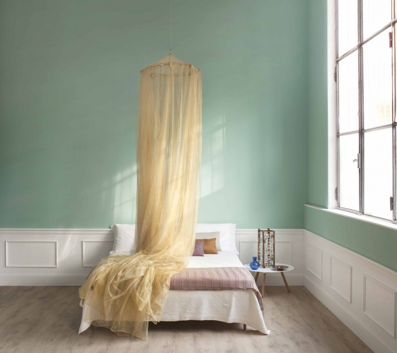Ein einziger Punkt zum Anbringen an der Zimmerdecke sowie den zentralen Punkt über dem Bett zu finden macht dieÂ
