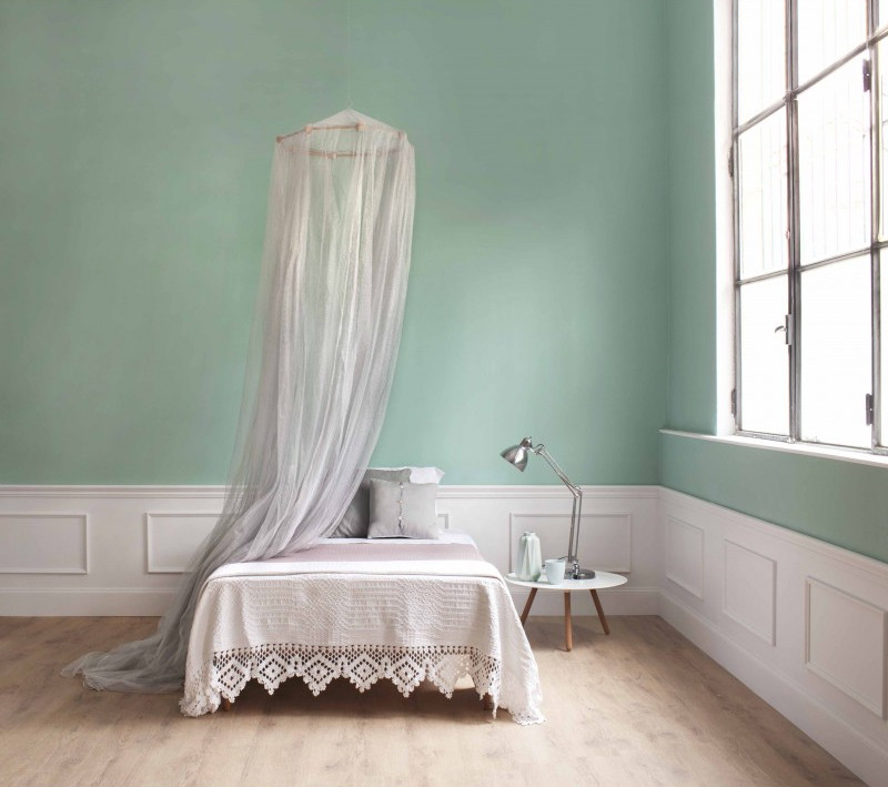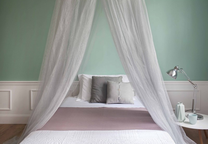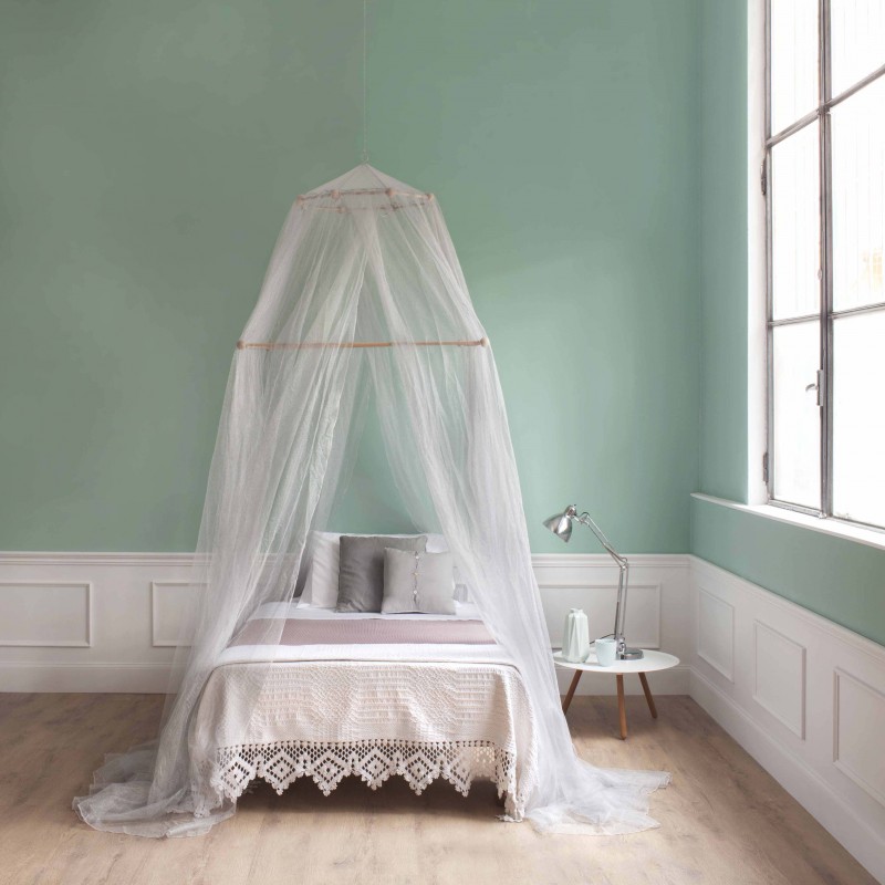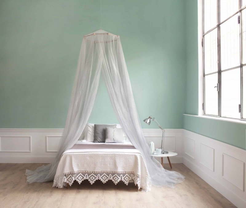 Ein einziger Punkt zum Anbringen an der Zimmerdecke sowie den zentralen Punkt über dem Bett zu finden macht dieÂ