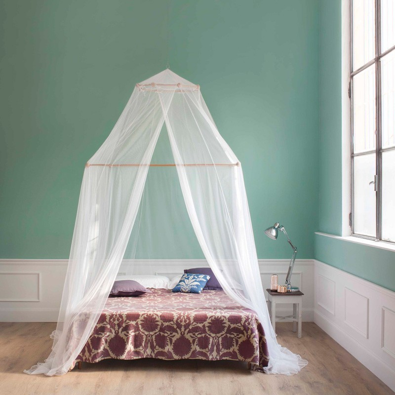 Ein einziger Punkt zum Anbringen an der Zimmerdecke sowie den zentralen Punkt über dem Bett zu finden macht dieÂ