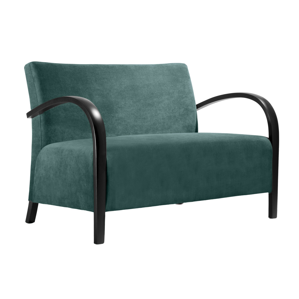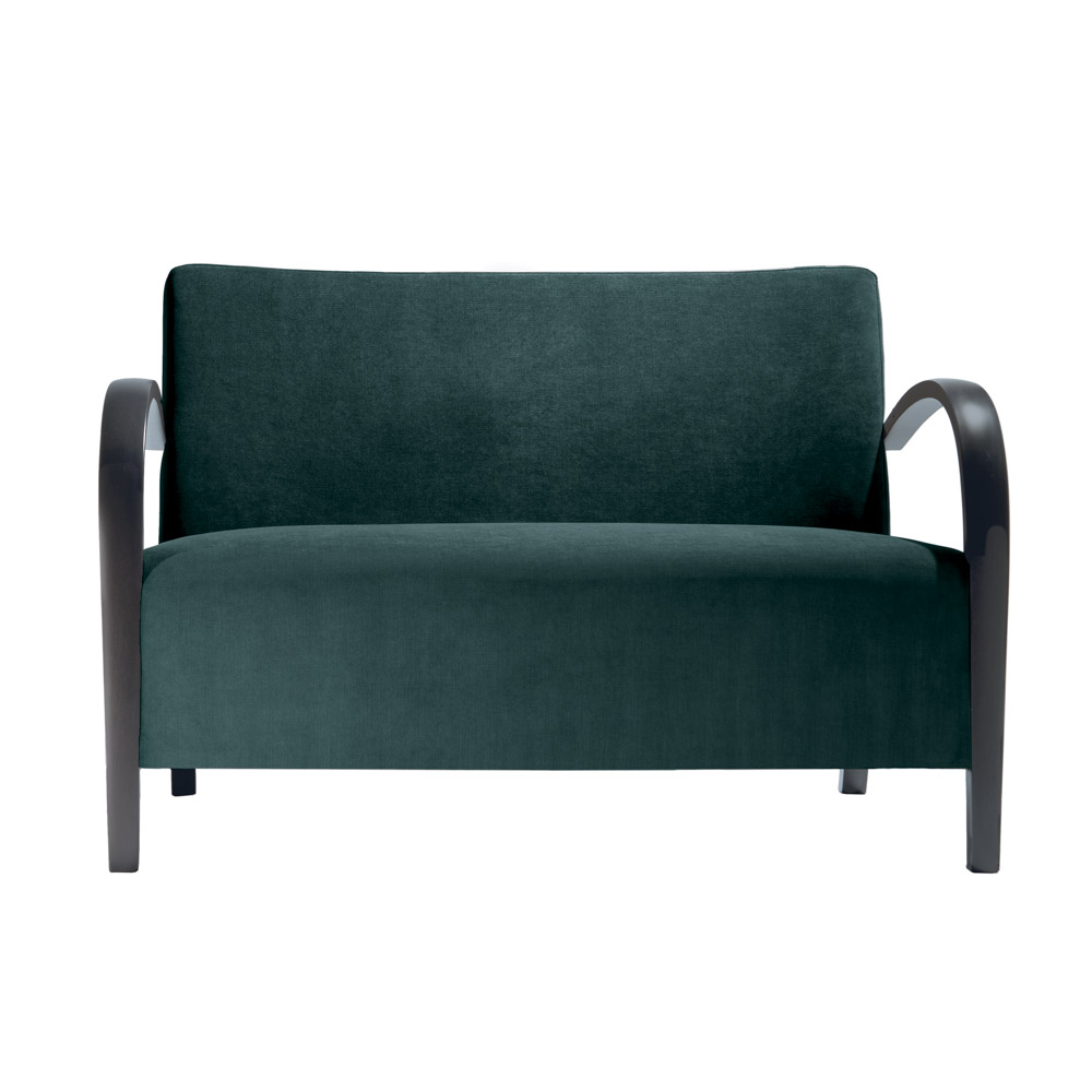 JO Elegante Lounge Stoff Sofa sichtbare Holzgestell Zweisitzer Empfang Wartebereich