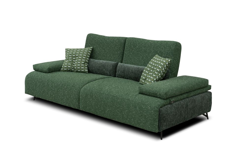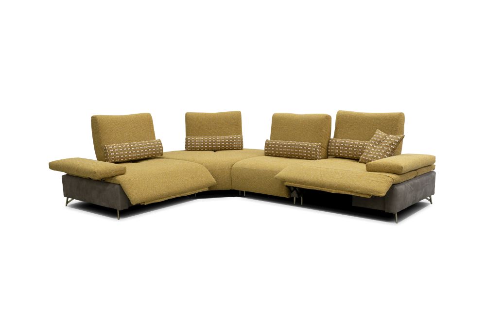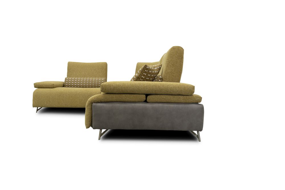 Sofa mit offenem Untergestell, feststehend oder über Eck, dessen Merkmal Rückenlehnen mit mit Kippmechanismus sind, die es ermöglichen, die Sitzetiefe zu variieren. Mit dem zurückgezogenen Rückenlehnen und Armlehnen kann die Sitzfläche so vergrößert werden, um nach Bedarf in ein bequemes Tagesbett umfunktioniert zu werden. Bett. Twix ist vielseitig und dynamisch und hat eine schlichte und elegante Silhouette, die auch auf der Rückseite des Sofas forgeführt wird: es eignet sich perfekt dazu, um in der Mitte des Raumes platziert zu werden.