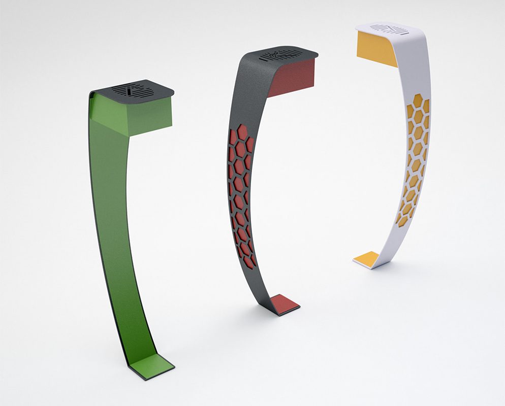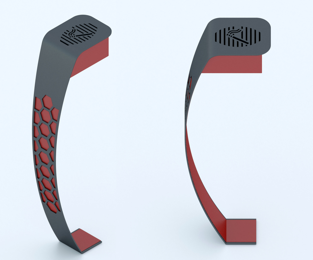 COMPOSITION: – composed of a single plate laser cut and calendered, on the top there are slots for the insertion of ash and cigarettes. – second Laser cutting and calendered Plate , welded on the supporting structure, contrasting color. – Featuring box ashtray with lid can be opened for removal of ash. – structure and box ashtray available in pure white RAL 9010, white aluminium RAL 9006, anthracite grey RAL 7016,corten. – second laser cutting plate available inin RAL 9010, signal yellow RAL 1003, flame red RAL 3000, telemagenta RAL 4010, sky blue RAL 5010 yellow green RAL 6018, telegrey RAL 7046, anthracite grey RAL 7016, white aluminium RAL 9006.