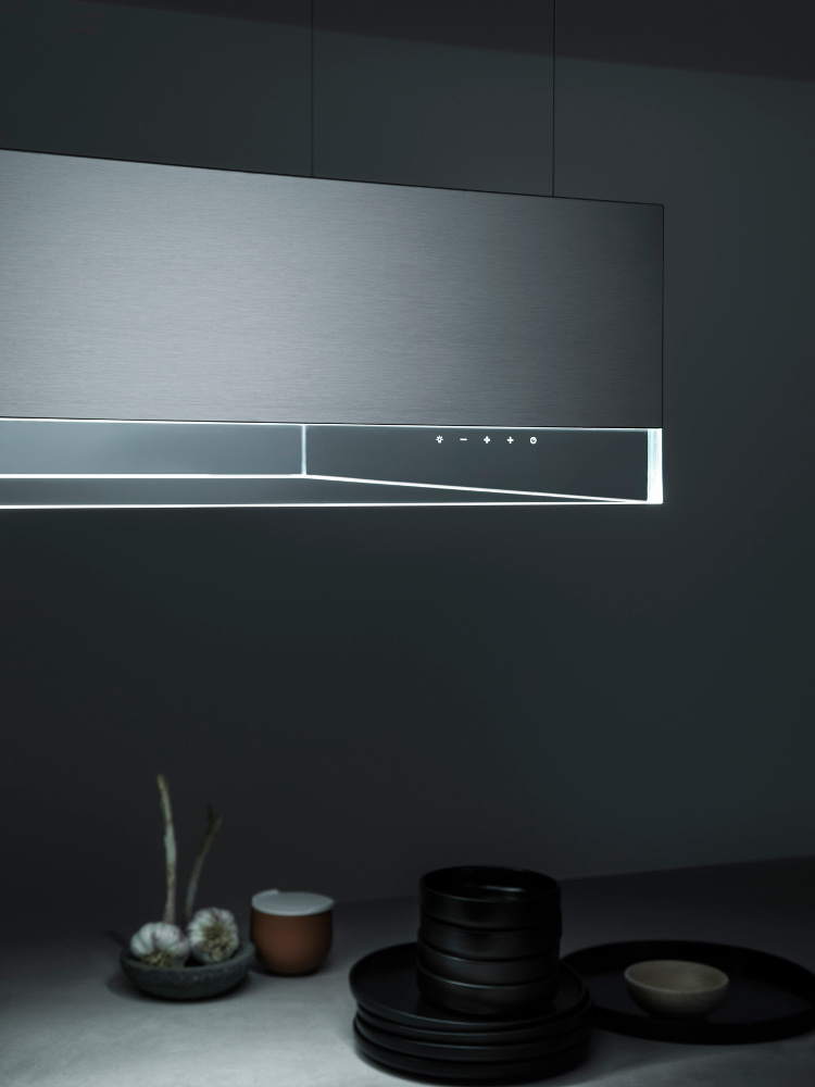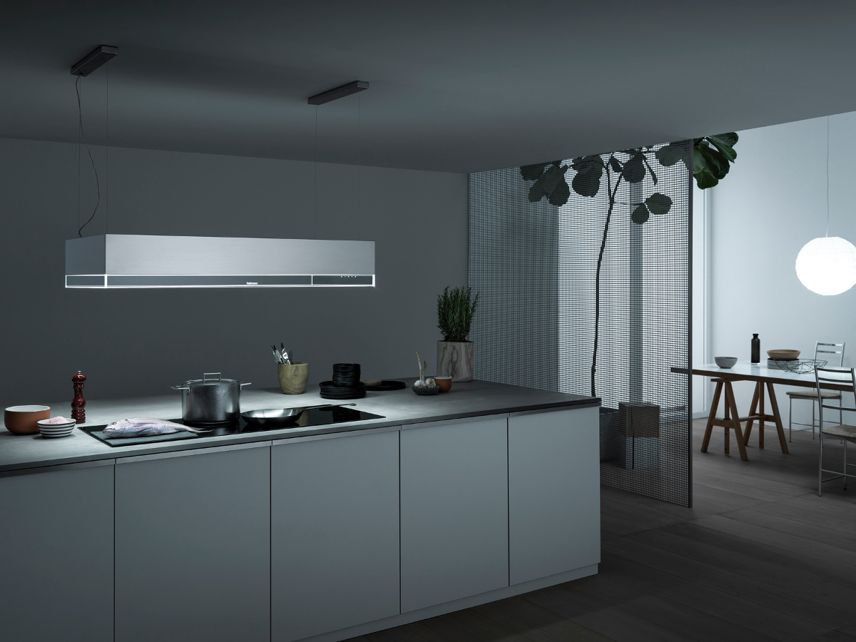 Dank der kompakten Größe und des minimalen Volumens von Circle.Tech können Dunstabzugshaubenmodelle mit einer minimalen Dicke gebaut werden, die perfekt an die neuen Designtrends angepasst sind. Dank dieser neuen Formen wird der Küchenraum optimiert, während eine angenehmere und funktionale Umgebung geschaffen wird.