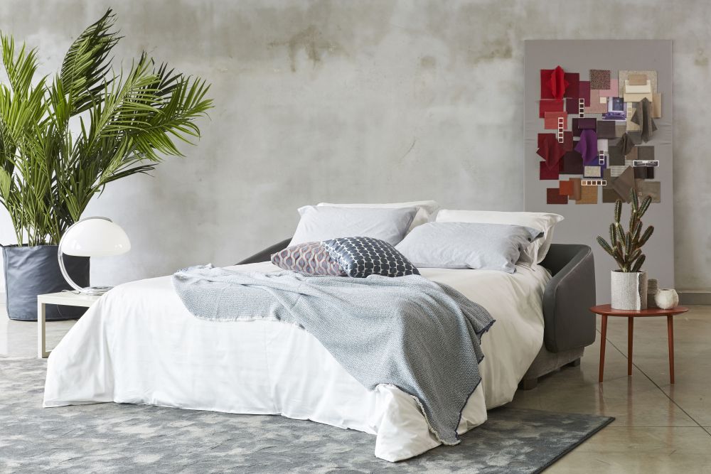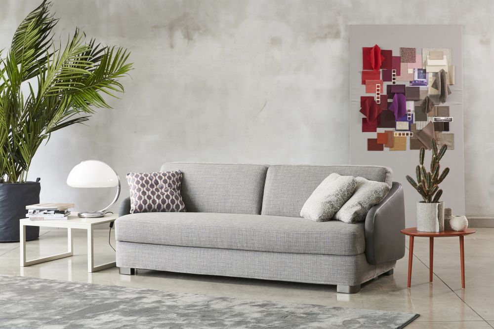 Vivien ist auch in der Ausführung als festes Sofa ohne Bett erhältlich; außerdem ist das Schlafsofa komplett zerlegbar für einen einfachen Transport.