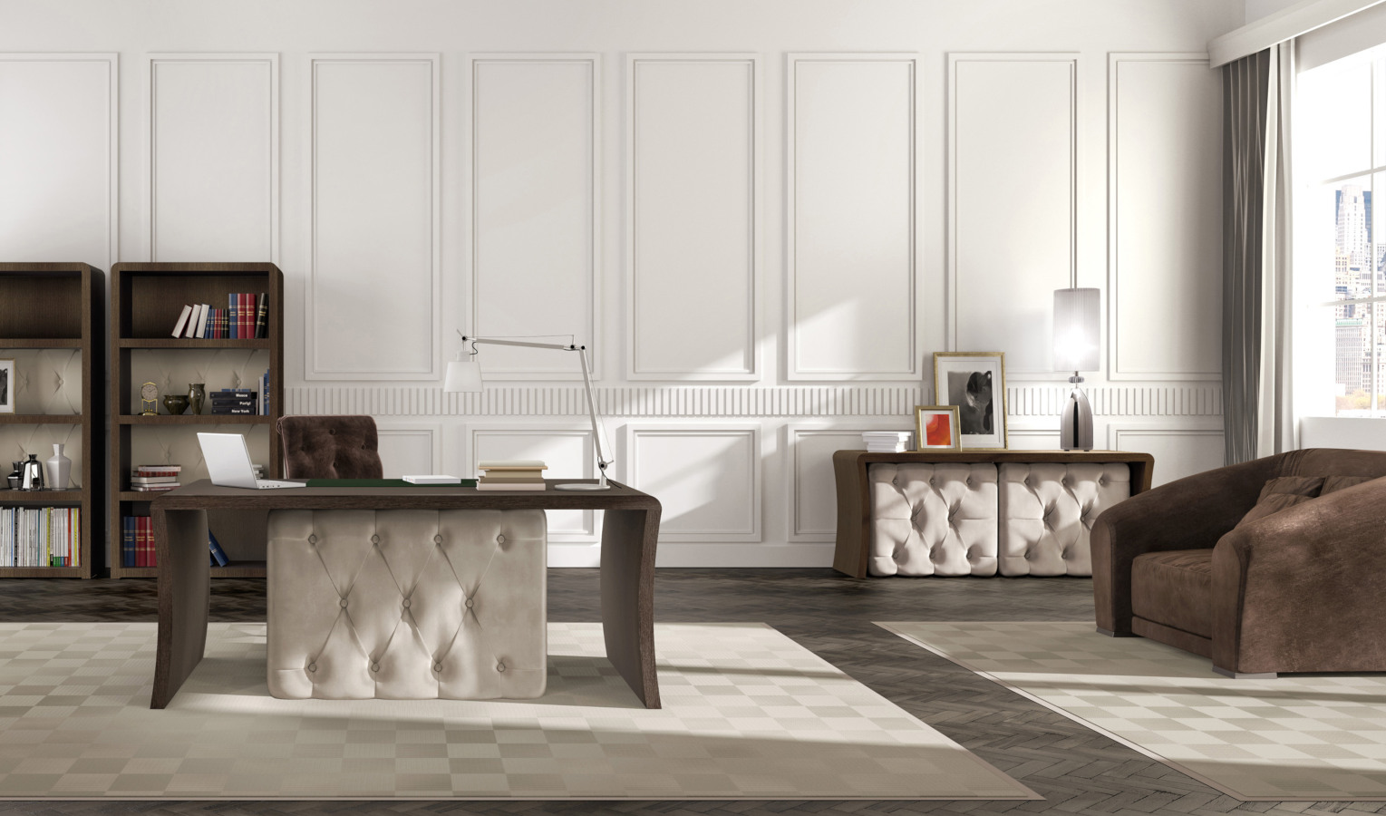 Eleganz und Schlichtheit in einfachen und modernen Linien, bei denen die Holzessenzen aus Nussbaum oder Eichenholz mit luxuriösen Ausstattungen wie Nabuck-Leder, reine Seide, Gold- oder Blattsilber, Cocco-Leder, glänzendes Samt und feine Keramik kombiniert werden. Jeder Artikel kann in Bezug auf Ausführung und Größen maßgeschneidert werden. Eleganz wird durch handgefertigte Details sowie eine sorgfältige Auswahl hochwertiger Materialien vermittelt.