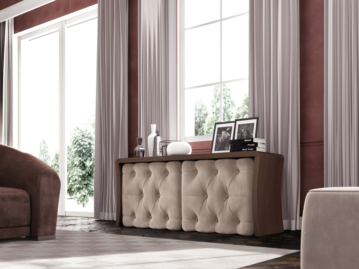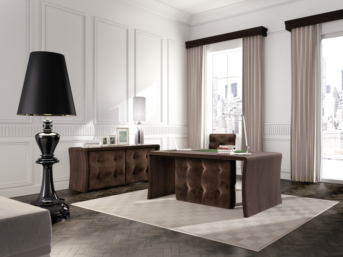 Eleganz und Schlichtheit in einfachen und modernen Linien, bei denen die Holzessenzen aus Nussbaum oder Eichenholz mit luxuriösen Ausstattungen wie Nabuck-Leder, reine Seide, Gold- oder Blattsilber, Cocco-Leder, glänzendes Samt und feine Keramik kombiniert werden. Jeder Artikel kann in Bezug auf Ausführung und Größen maßgeschneidert werden. Eleganz wird durch handgefertigte Details sowie eine sorgfältige Auswahl hochwertiger Materialien vermittelt.