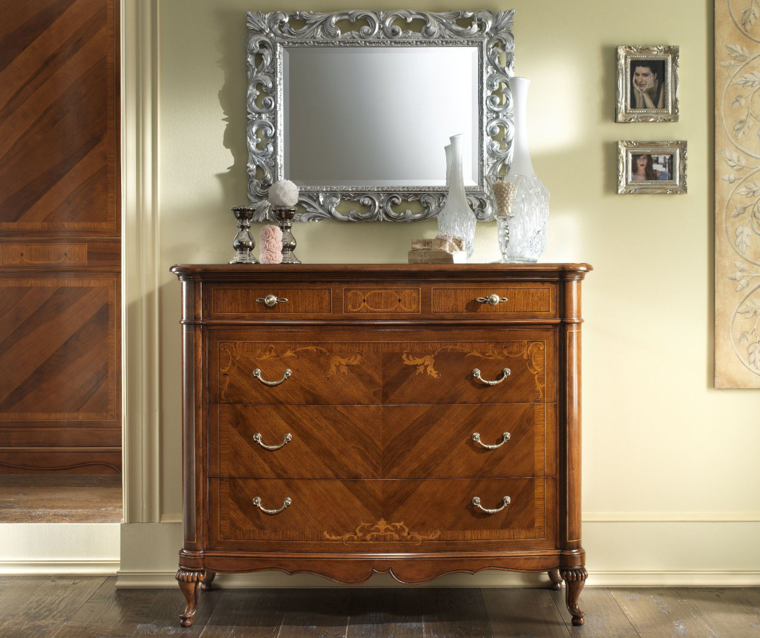 Wahl des Holzes: Es werden unterschiedliche Essenzen verwendet, die jeweils die Einrichtungselemente aufwerten, die durch bestimmte Inlays und Schnitzereien bereichert werden. Die Verwendung von Massivholz erster Qualität gewährleistet über die Jahre eine spürbare Qualität und Haltbarkeit.