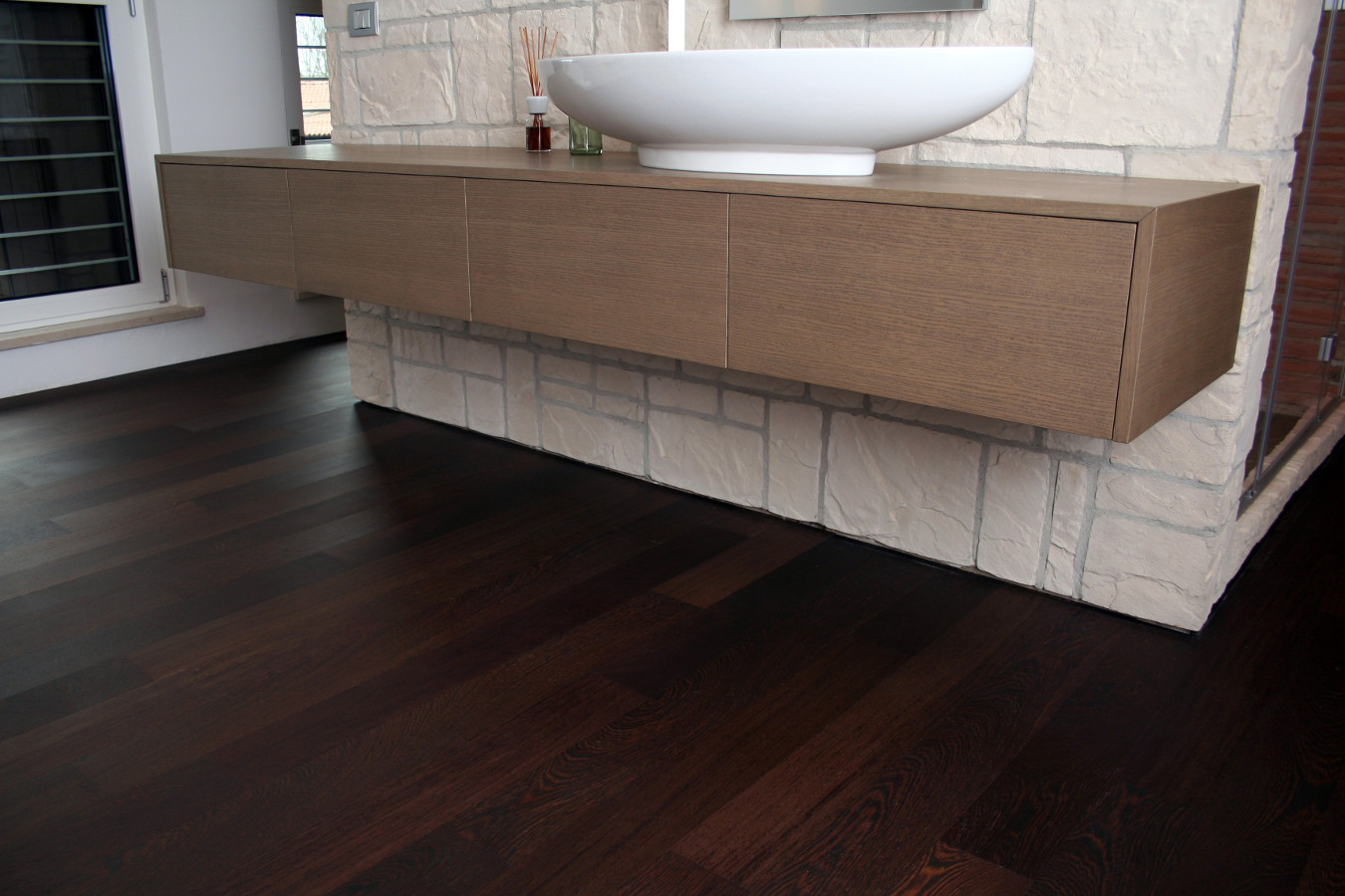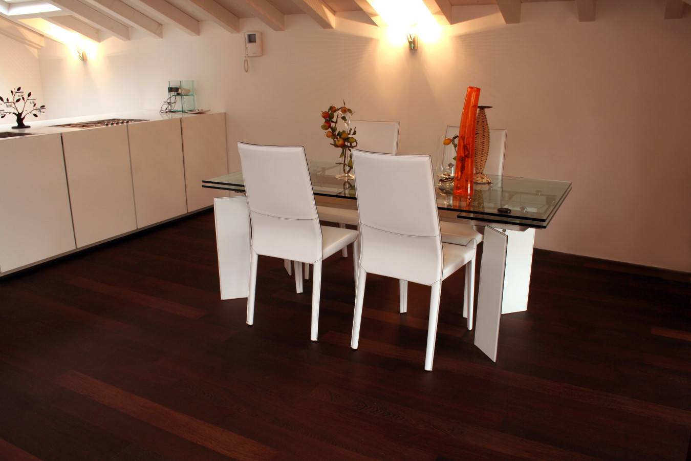 ÖL Transparentes, umweltschonendes Öl, das weder Wasser noch Lösungsmittel enthält: 0% VOC. Es kann wiederverwendet werden und ist leicht zu warten, und wird mit den Jahren besser. Das Öl gibt den Boden und den Verkleidungen ein Wärmegefühl. Auf Wunsch können wir das Produkt mit gefärbtem Öl liefern.