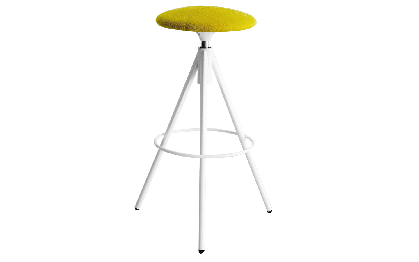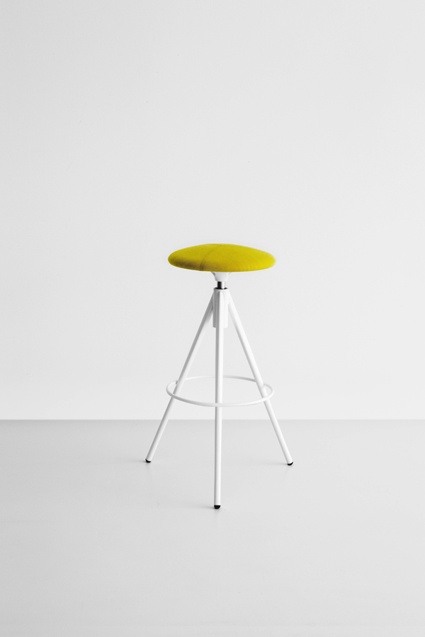 Hocker mit drehbarem Sitz aus Polyurethan mit Stoff, Soft-oder Kunstleder bezogen.