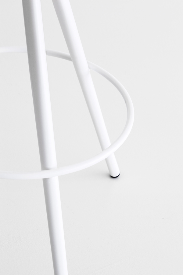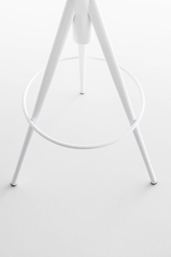Gestell aus pulverlackiertem oder matt verchromtem Metallrohr, das von einem runden zu einemdreieckigen Querschnitt übergeht.