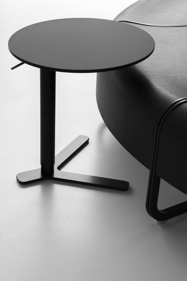 Höhenverstellbares Tischchen mit Platte in verschiedenen Ausführungen.