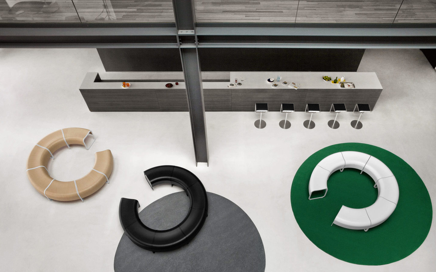 Die einzelnen Elemente können einfach miteinander kombiniert und verbunden werden und eigenen sich daher für Warteräume, Museen oder Schulen.