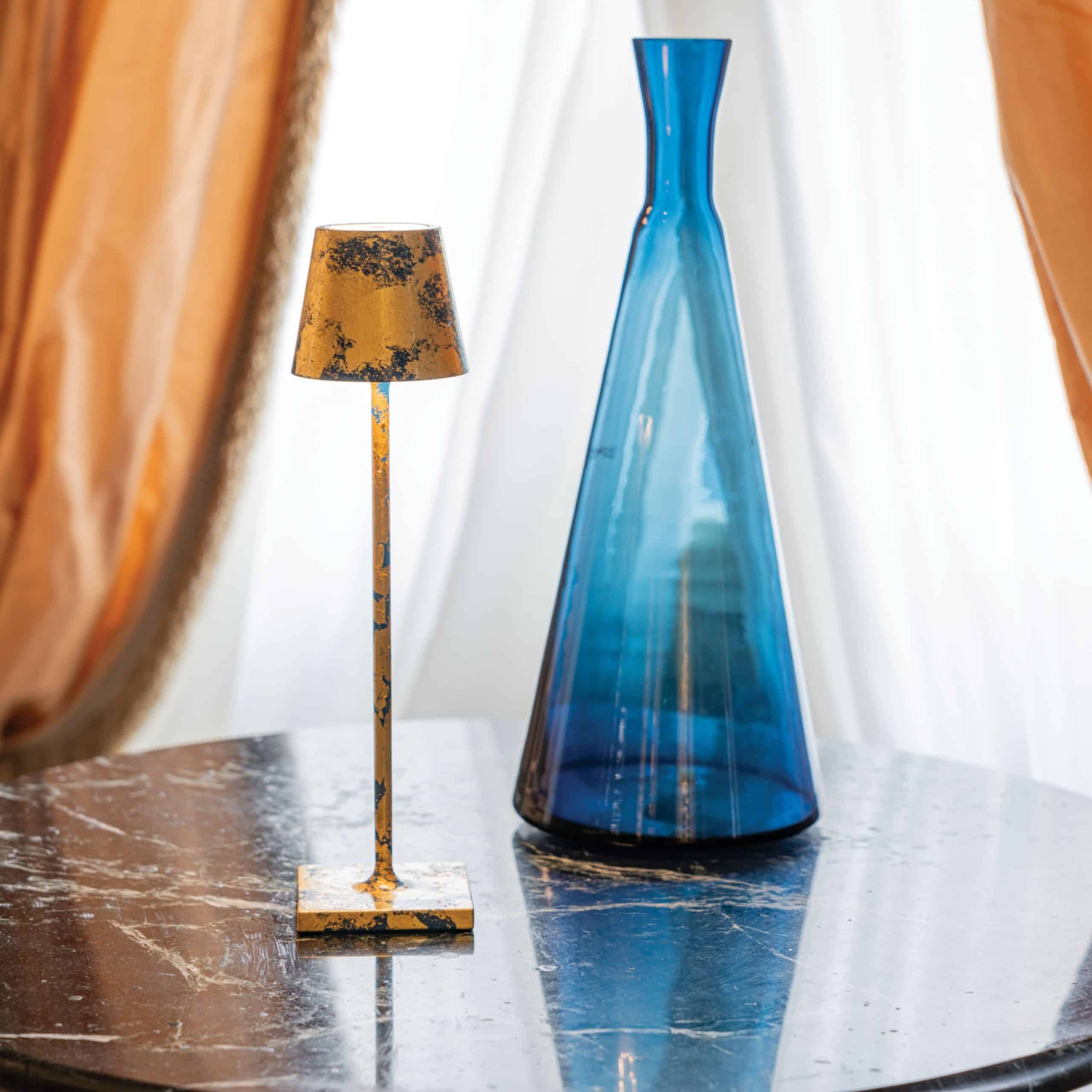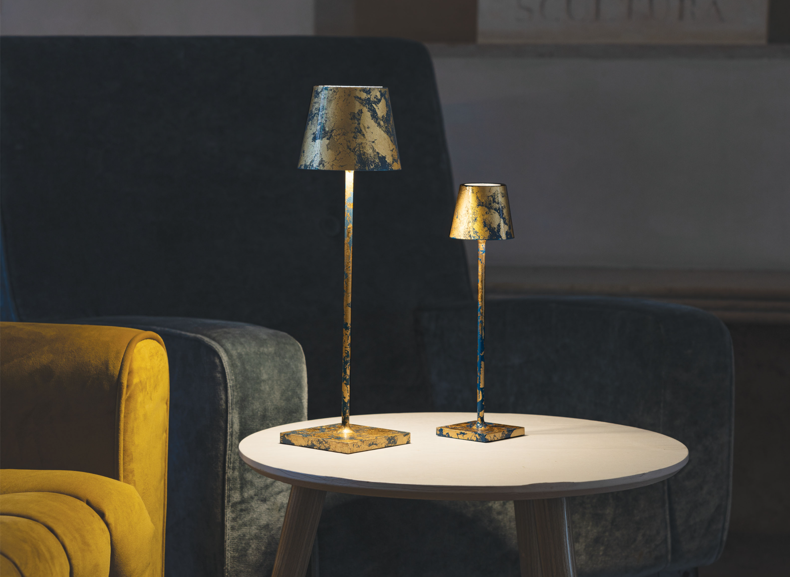 ZAFFERANO: NEUE OBERFLÄCHEN BEREICHERN DAS ANGEBOT AN KABELLOSEN LAMPEN by giulia colona Wohnkultur Neue, edle Oberflächen bereichern das Sortiment an kabellosen Lampen von Zafferano: Mattschwarz und Craquelé-Gold verleihen Poldina, Poldina Micro und Pina einen neuen Reiz.Wenn Schwarz die Farbe der Eleganz und des Geheimnisses ist, dann ist die „Total Black“-Version von Poldina die raffinierteste Ausführung von Zafferanos ikonischer Bestseller-Lampe. Es ist äußerst vielseitig und passt mit seinem diskreten, aber dennoch kühnen Stil in jede Umgebung und strahlt zeitlose Klasse und Raffinesse aus. Das Craquelé-Finish entsteht durch manuelles Auftragen eines goldfarbenen Metallblatts: Dieses Verfahren imitiert ein oberflächliches Muster aus Rissen, die die Hintergrundfarbe sichtbar machen und so einen angenehmen Kontrast in Farbe und Textur erzeugen. Pinas Craquelé-Finish ist auf schwarzem Hintergrund erhältlich; Die Craquelé-Oberfläche von Poldina und Poldina Micro ist auf schwarzen, roten und blauen Hintergründen erhältlich. Aufgrund der manuellen Technik kann das endgültige Aussehen der Lampen abweichen. Eventuelle Unstimmigkeiten zeugen vom Wert und der Einzigartigkeit jeder Lampe und sollten nicht als Unvollkommenheiten betrachtet werden. Genau wie die anderen tragbaren und wiederaufladbaren Lampen im Zafferano-Katalog sind diese neuen Versionen aus Aluminiumdruckguss gefertigt; Sie werden mit einer Berührung ein-/ausgeschaltet und gedimmt. sie werden mit einer Kontaktbasis aufgeladen; Sie ermöglichen es dem Benutzer, die Farbtemperatur des LED-Lichts zwischen 2200 K, 2700 K und 3000 K zu wählen. Die schwarze Version von Poldina ist aufgrund der hohen Schutzart IP65 für den Außenbereich geeignet; während diejenigen mit Craquelé-Finish mit Blattgold nicht für den Außenbereich geeignet sind.Redaktion: Giulia Colona Link Danke fürs Teilen! 🙂teilen teilen merken teilen teilen RSS-feed AKKULEUCHTE, Krakelee, Pina, Poldina, Zafferano